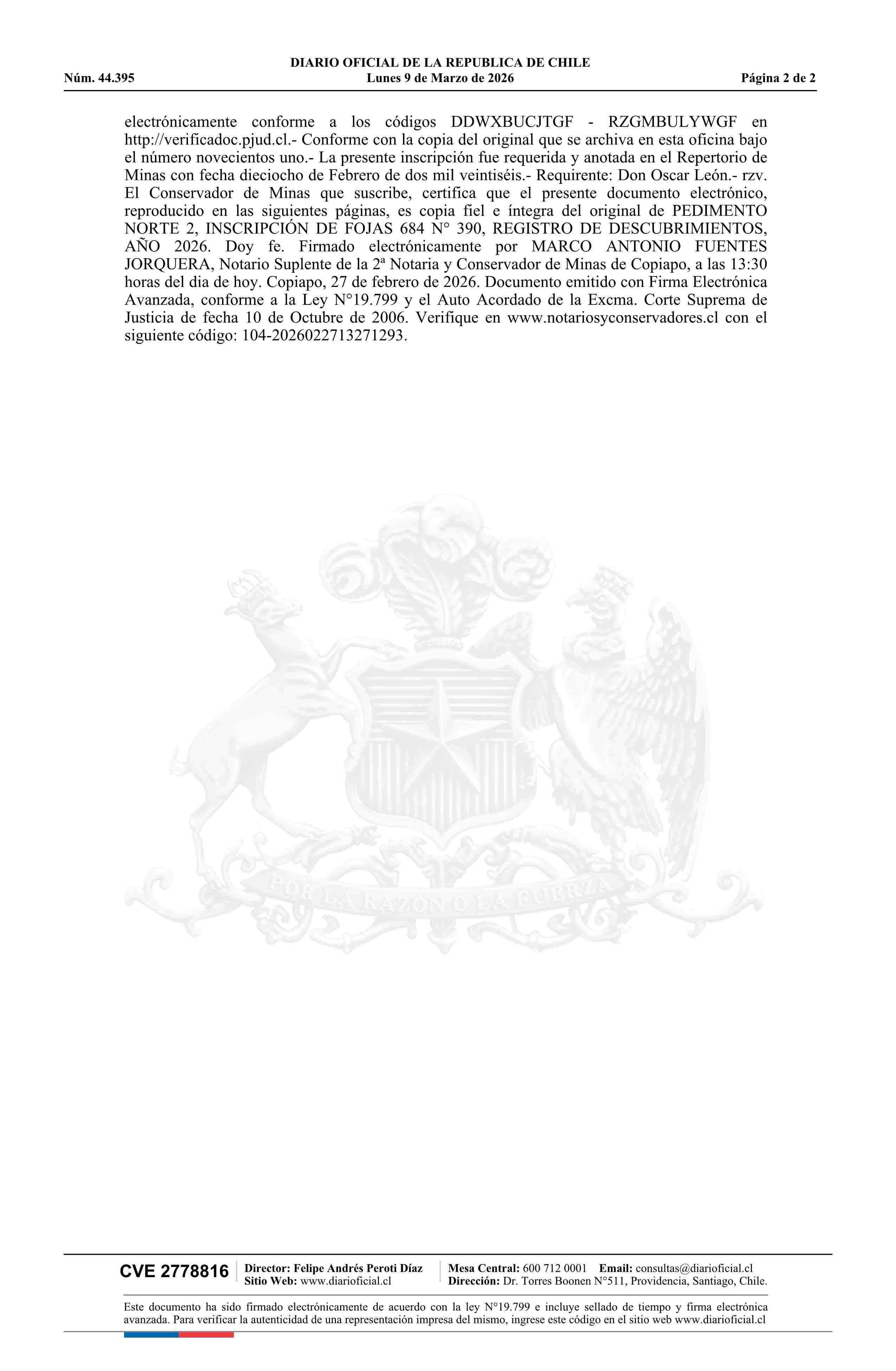 09-03-2026 DIARIO OFICIAL CHILE - BOLETÍN OFICIAL DE MINERÍA