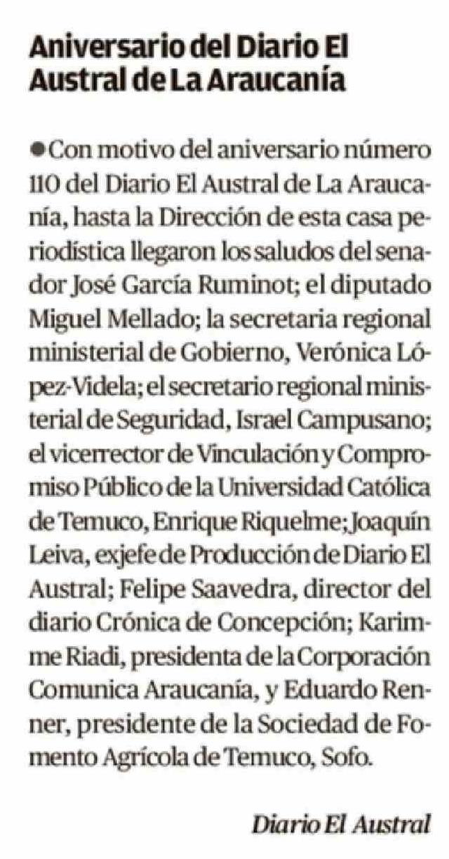 | Título: | Cartas: Aniversario del Diario El Austral de La Araucania |