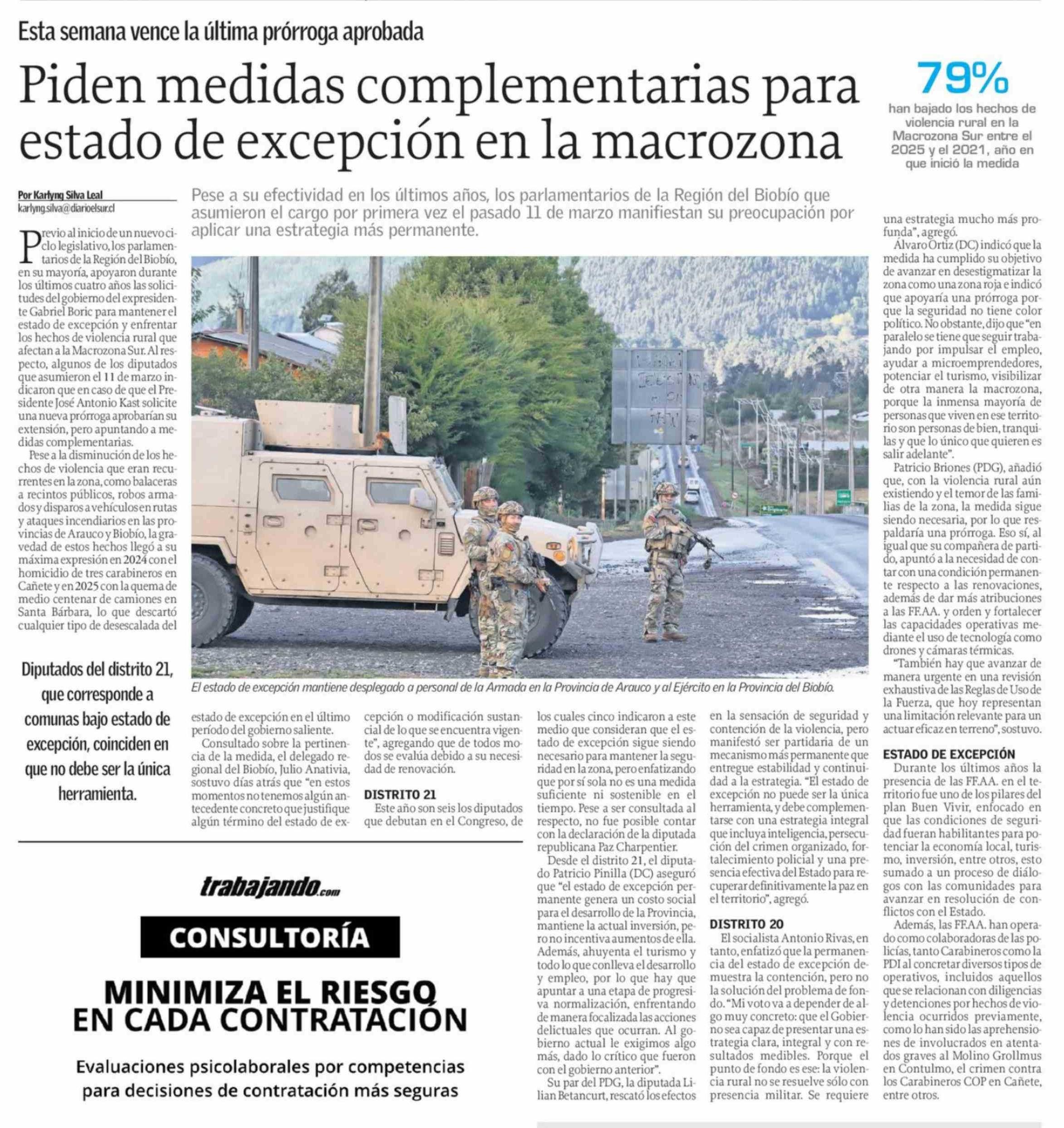 Título: Piden medidas complementarias para estado de excepción en la macrozona