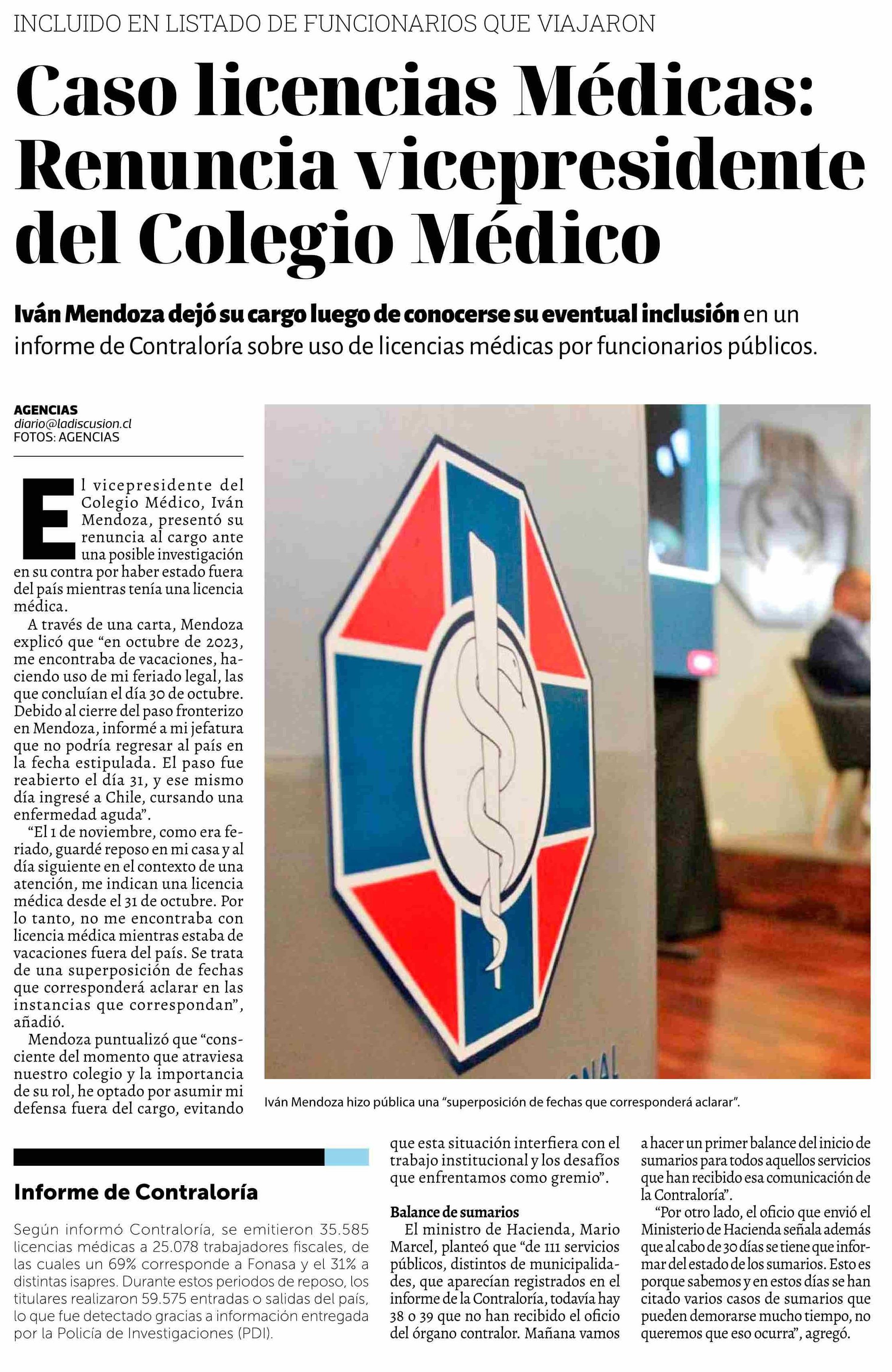 Caso licencias Médicas: Renuncia vicepresidente del Colegio Médico 27-05-2025 La Discusión |