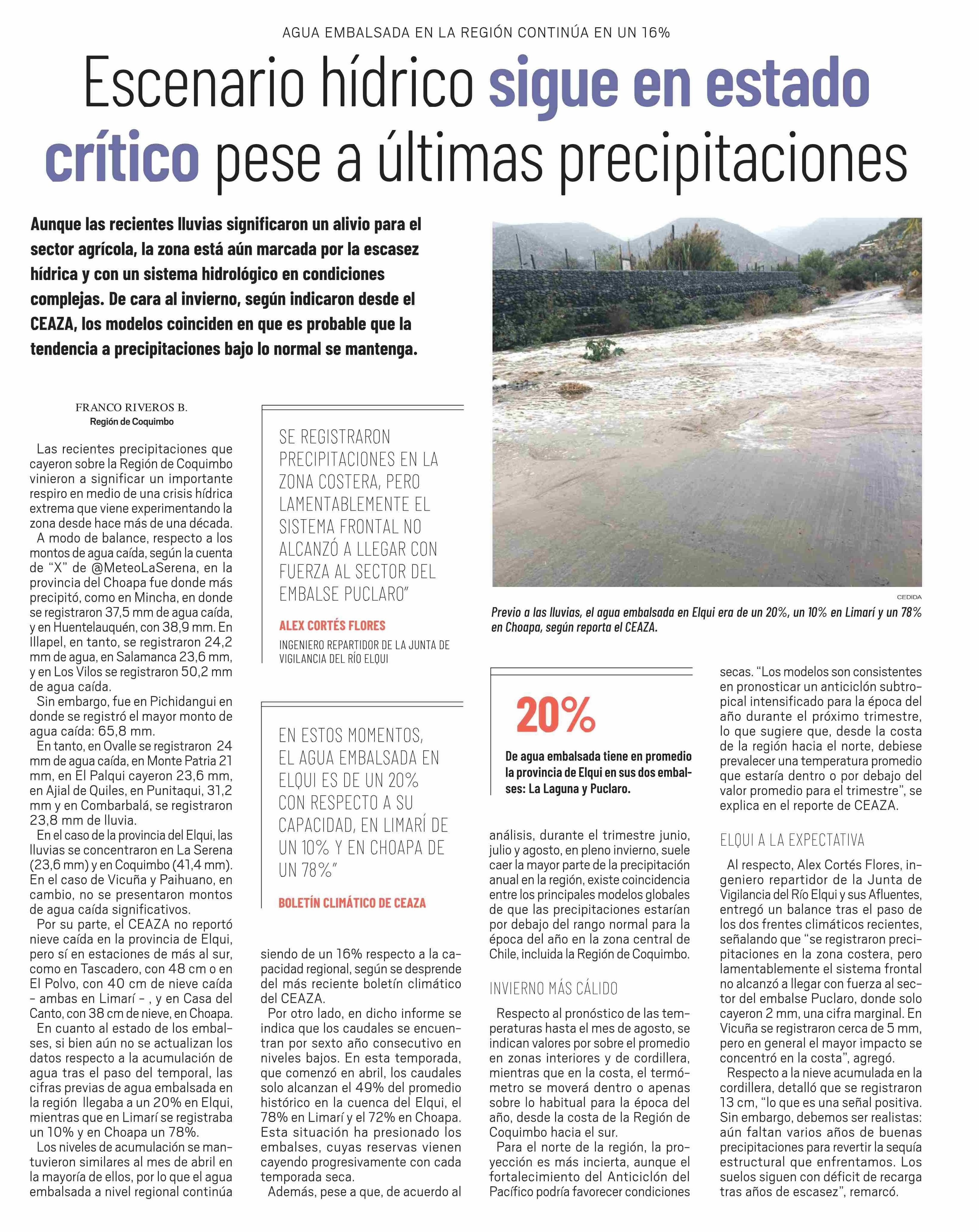 Escenario hídrico sigue en estado crítico pese a últimas precipitaciones 18-06-2025 El Ovallino |