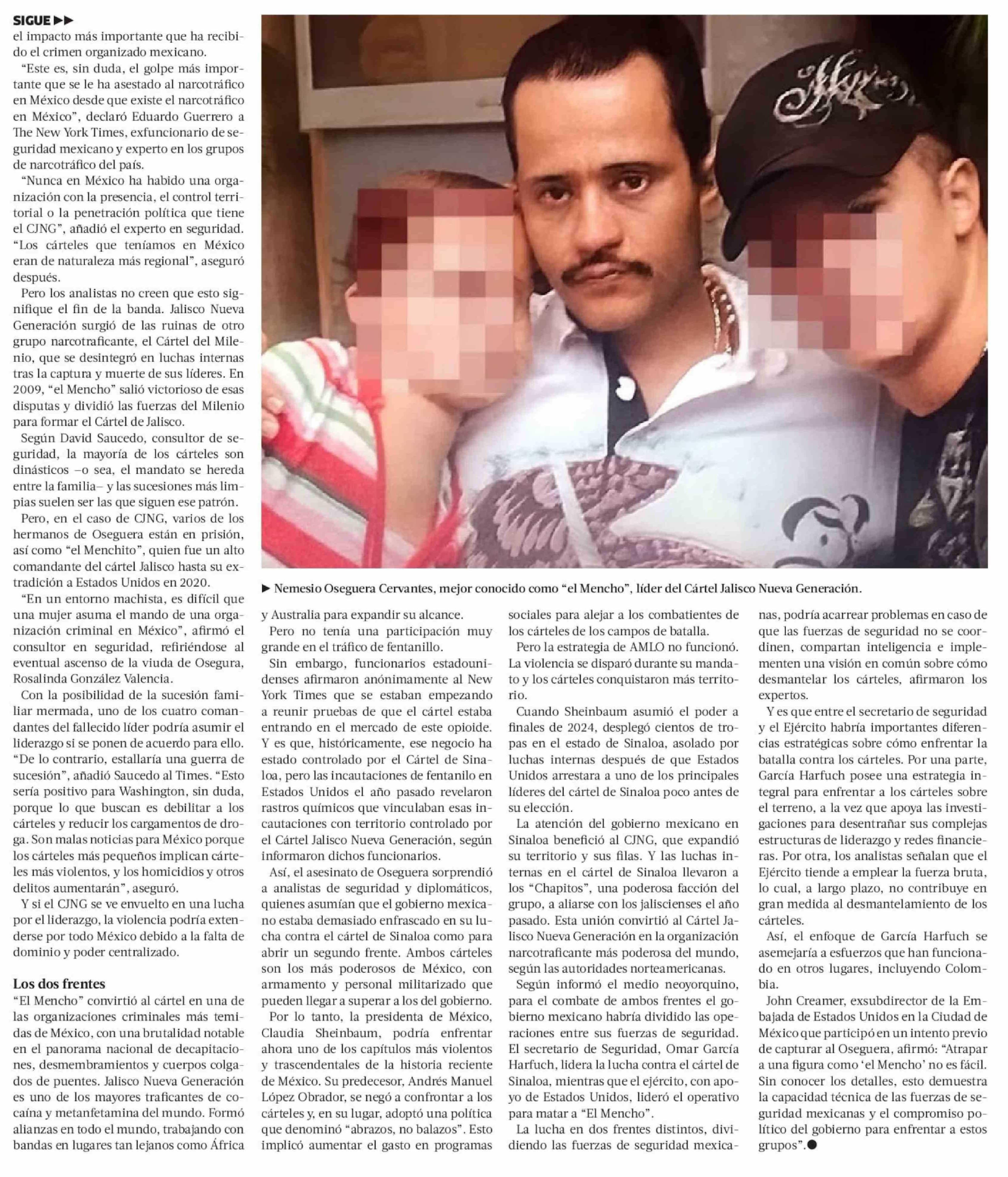 Sucesión y fragmentación: los posibles escenarios tras la caída de "el Mencho" en México 24-02-2026 La Tercera |