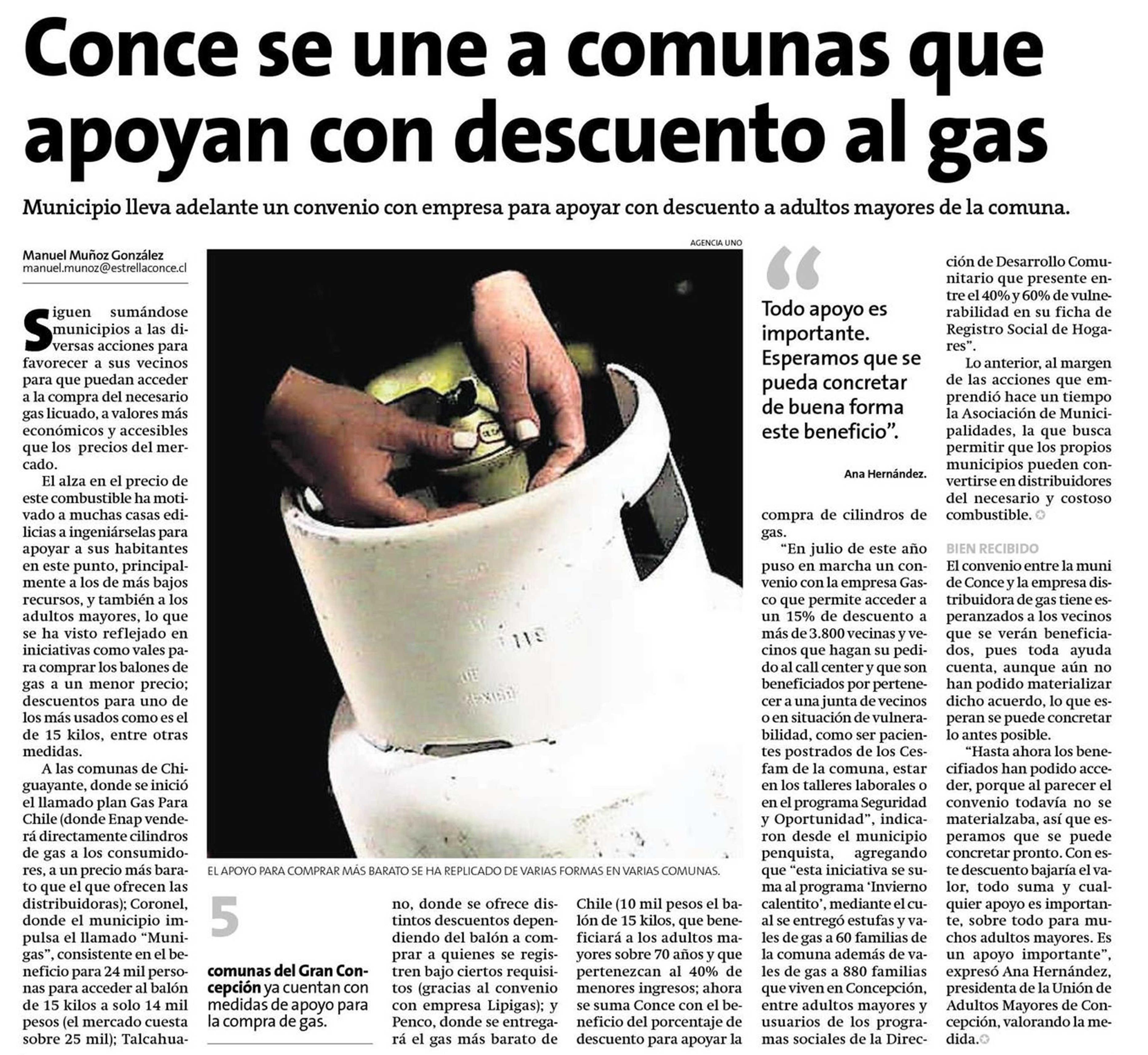 Título: Conce se une a comunas que apoyan con descuento al gas