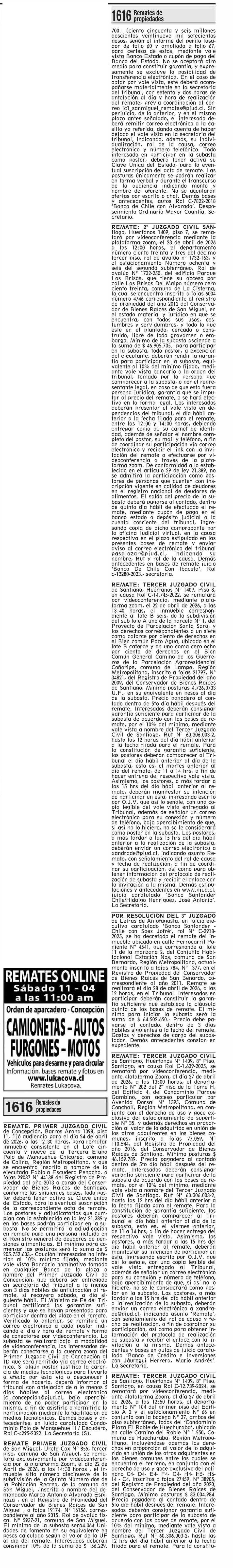 Fecha: 07-04-2026 Sector: Remates Región: Región Metropolitana de Santiago