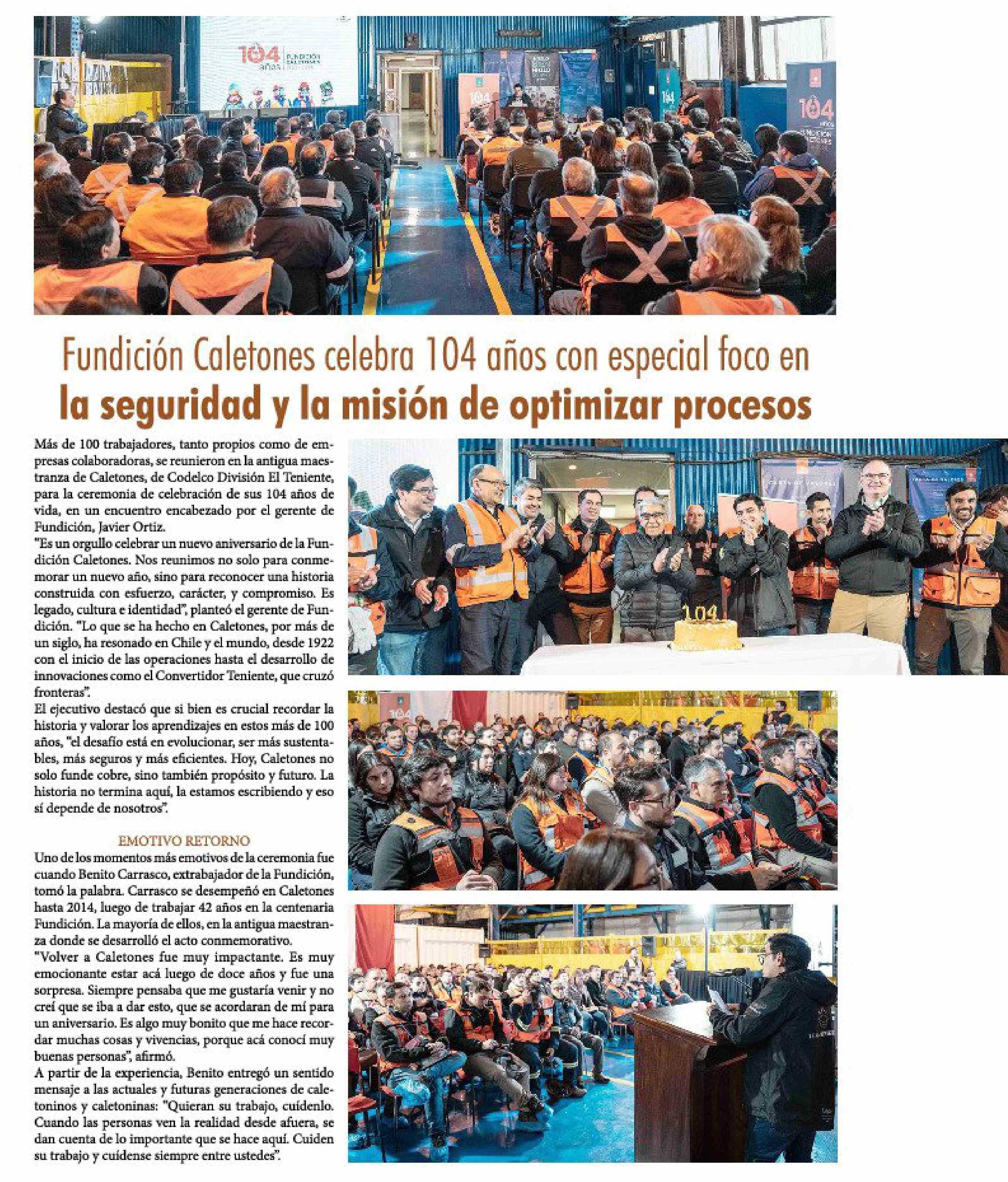 | Título: | Fundición Caletones celebra 104 años con especial foco en la seguridad y la misión de optimizar procesos |