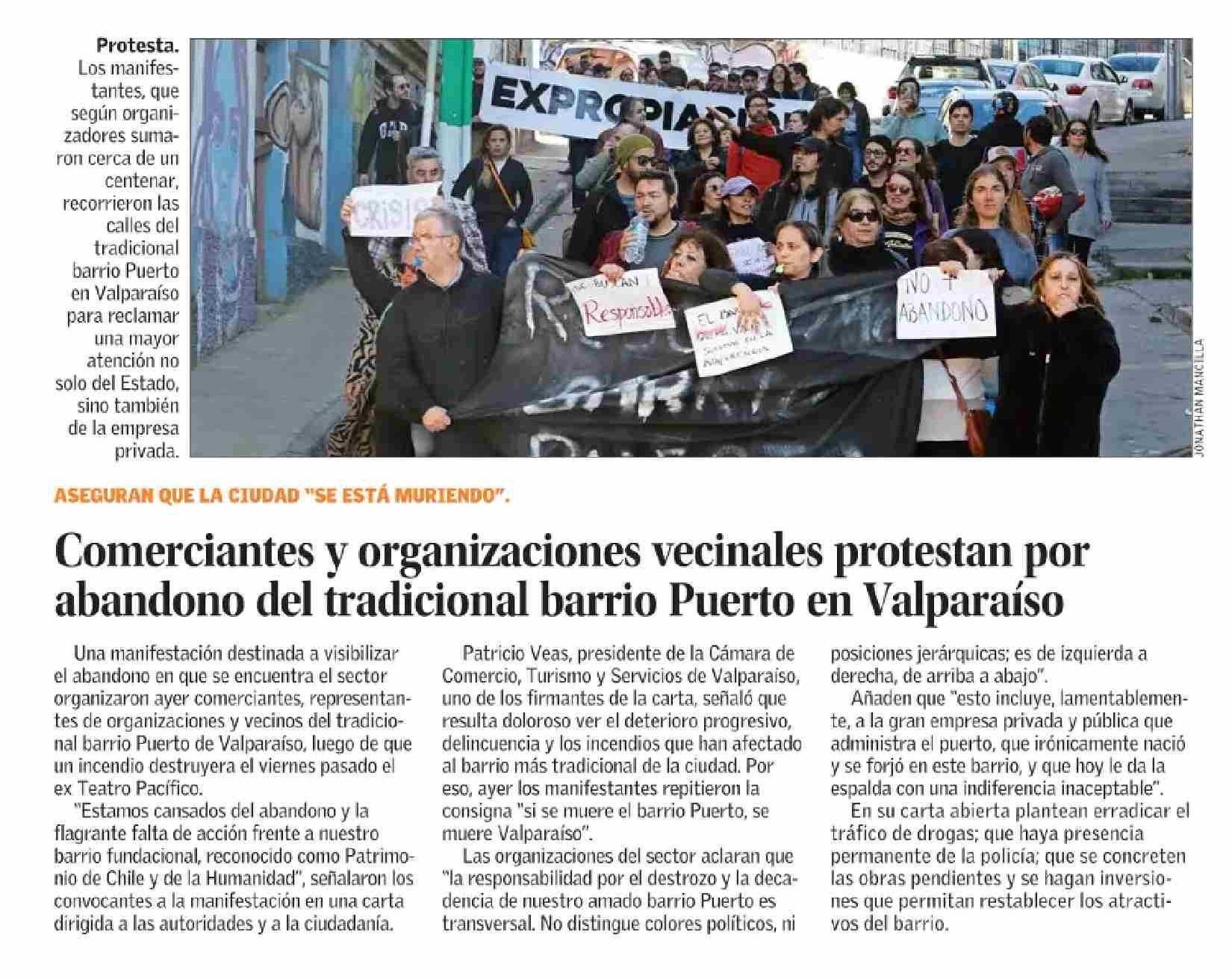 | Título: | Comerciantes y organizaciones vecinales protestan por abandono del tradicional barrio Puerto en Valparaíso |