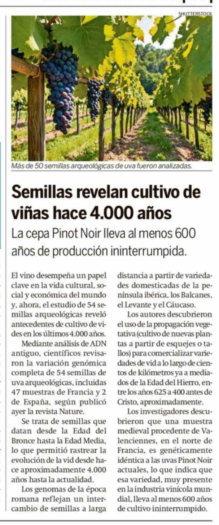 Título: Semillas revelan cultivo de viñas hace 4.000 años