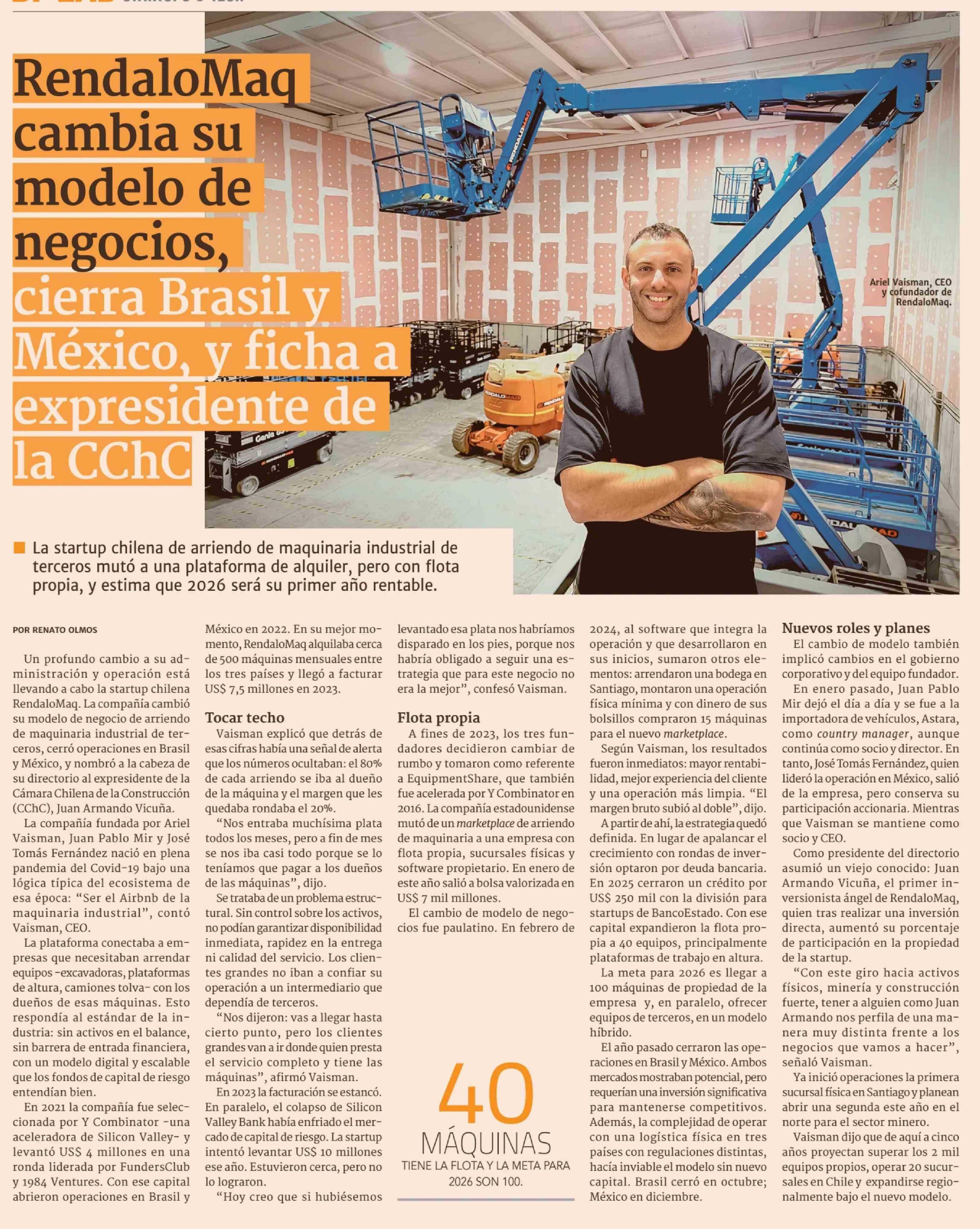 Título: RendaloMaq cambia su modelo de negocios, cierra Brasil y México, y ficha a expresidente de la CChC