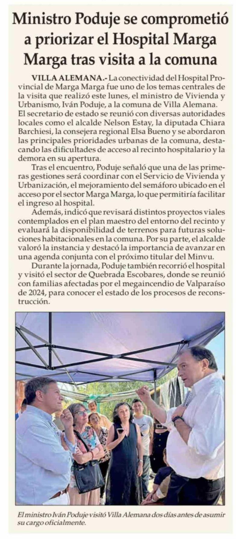 Título: Ministro Poduje se comprometió a priorizar el Hospital Marga Marga tras visita a la comuna