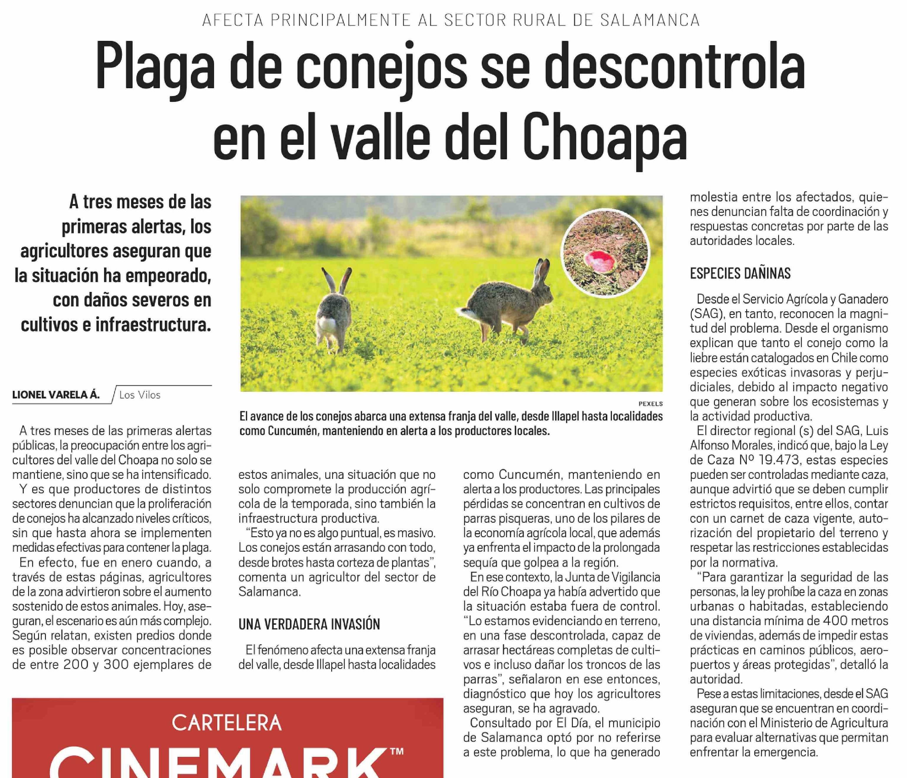 Plaga de conejos se descontrola en el valle del Choapa 16-04-2026 El Día |