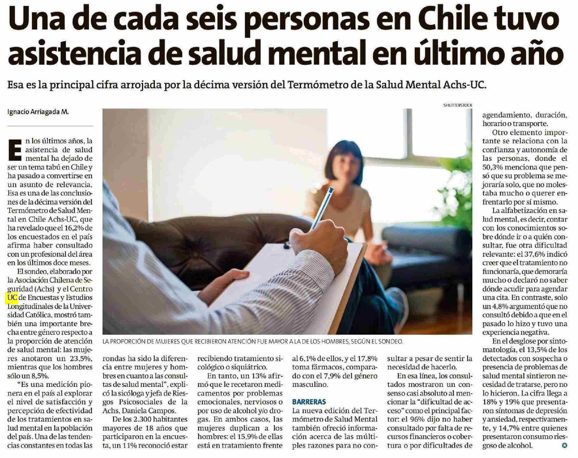 | Título: | Una de cada seis personas en Chile tuvo asistencia de salud mental en último año |