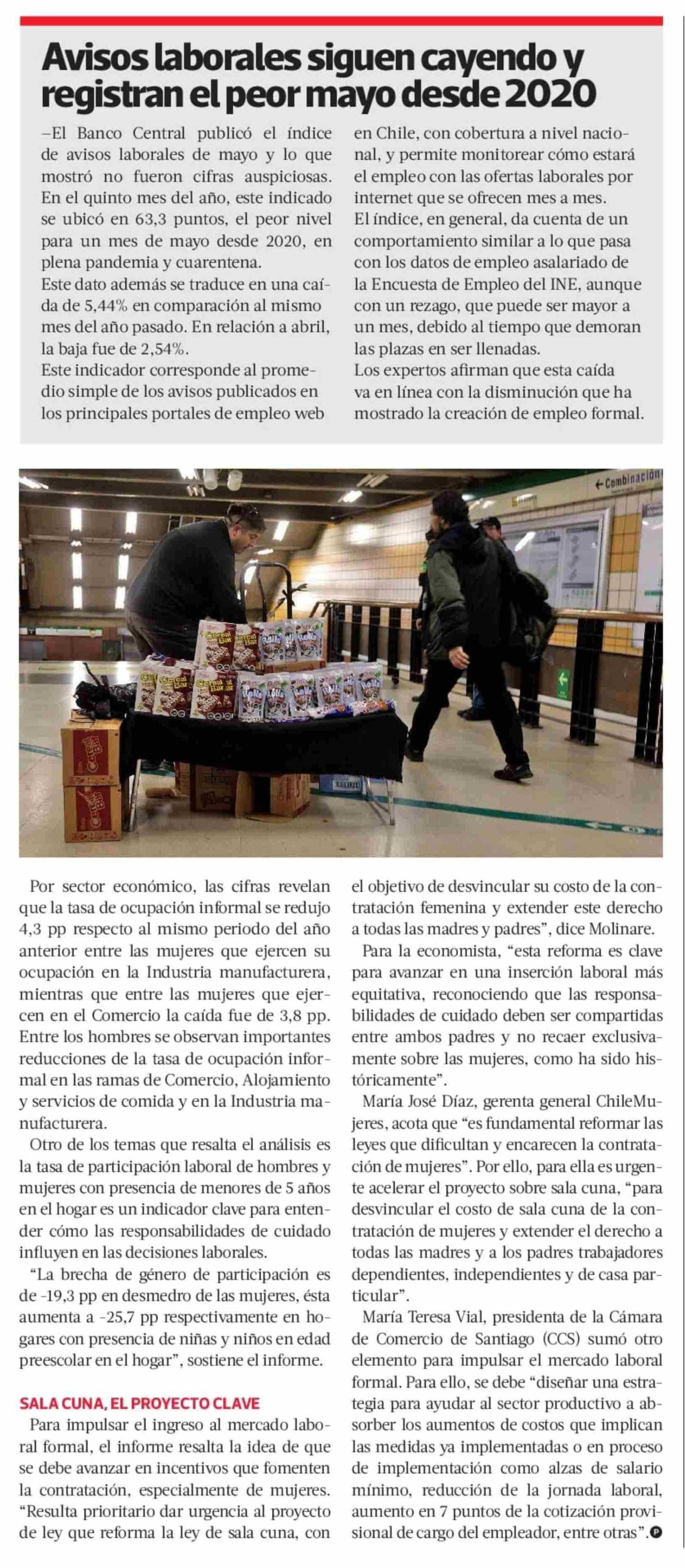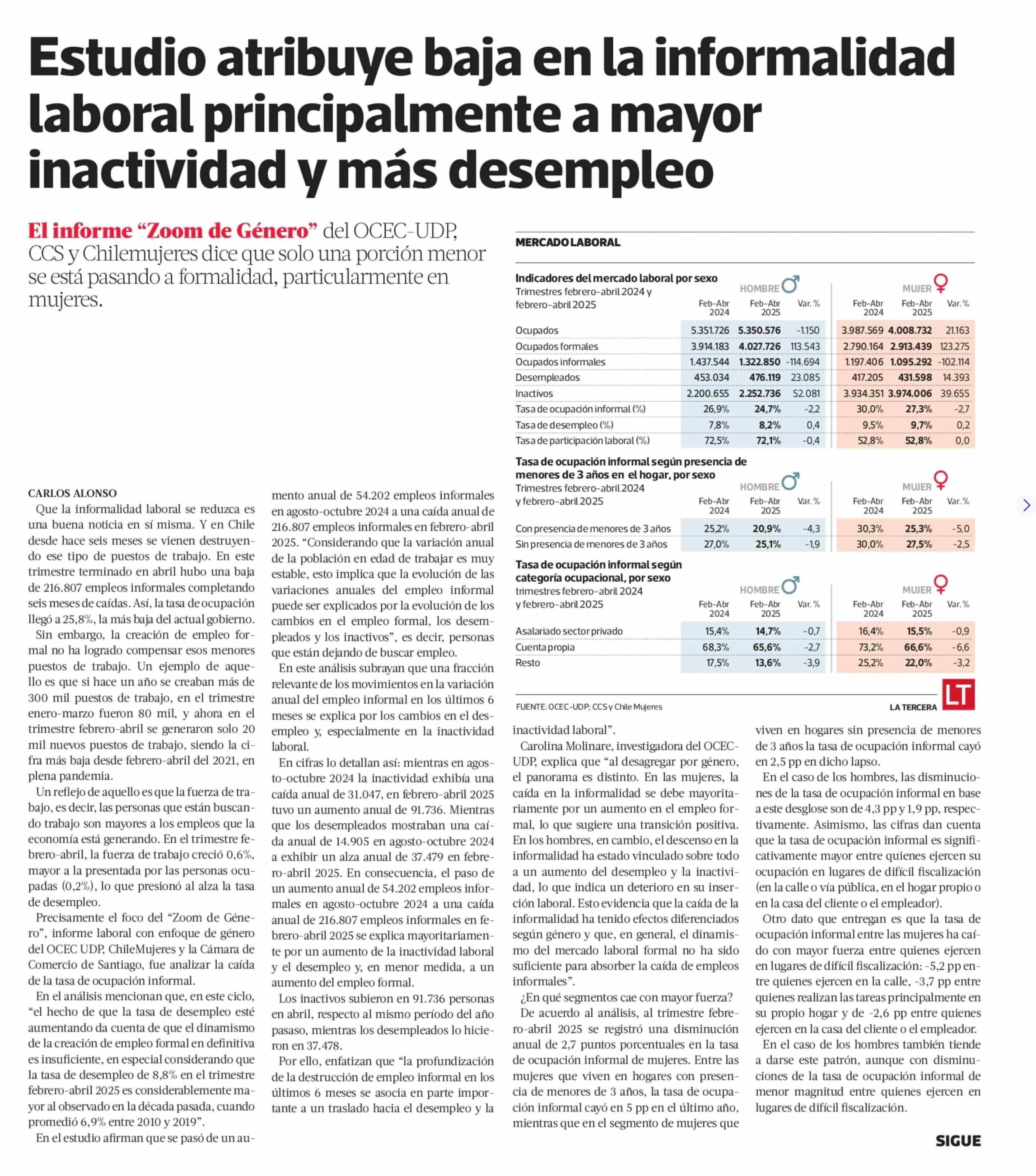 Estudio atribuye baja en la informalidad laboral principalmente a mayor inactividad y más desempleo 10-06-2025 La Tercera |