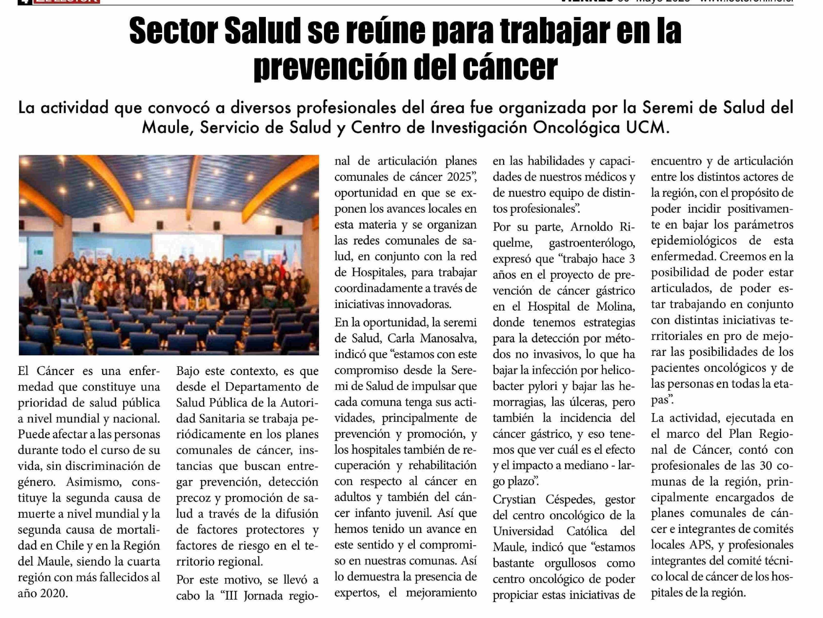 Sector Salud se reúne para trabajar en la prevención del cáncer 30-05-2025 El Lector |