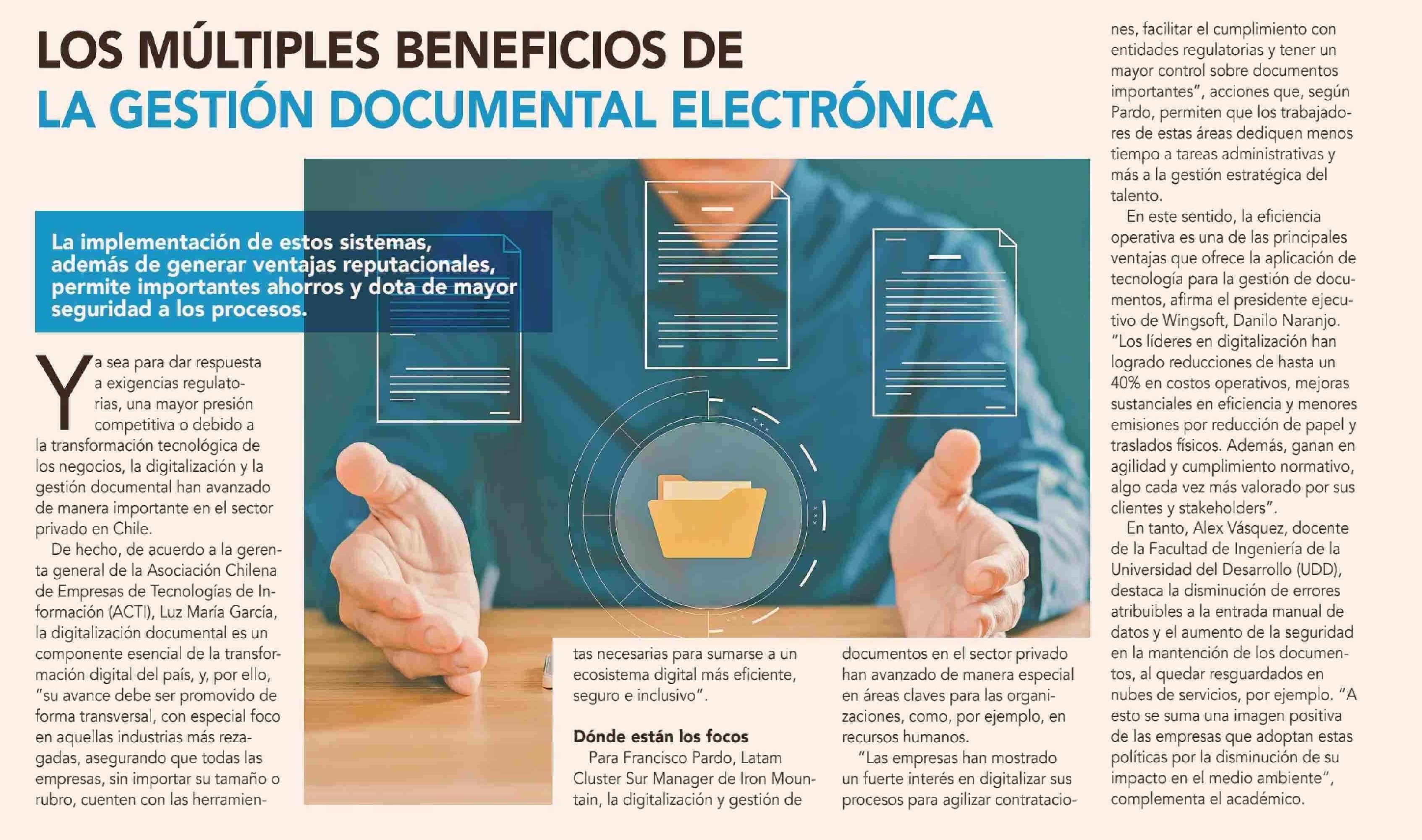 LOS MÚLTIPLES BENEFICIOS DE LA GESTIÓN DOCUMENTAL ELECTRÓNICA 16-06-2025 Diario Financiero |
