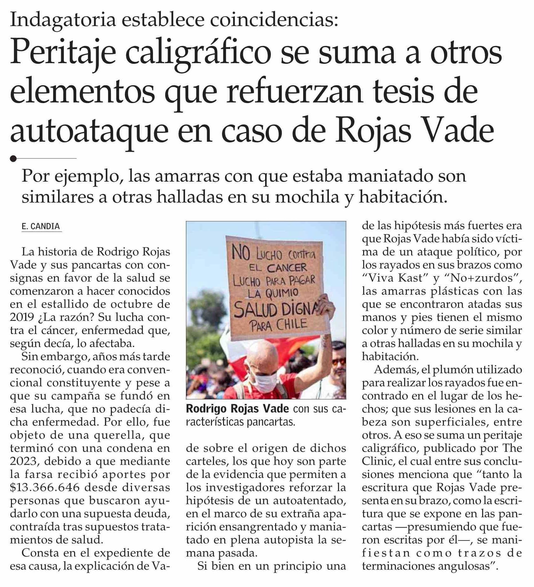 Peritaje caligráfico se suma a otros elementos que refuerzan tesis de autoataque en caso de Rojas Vade 20-03-2026 El Mercurio |