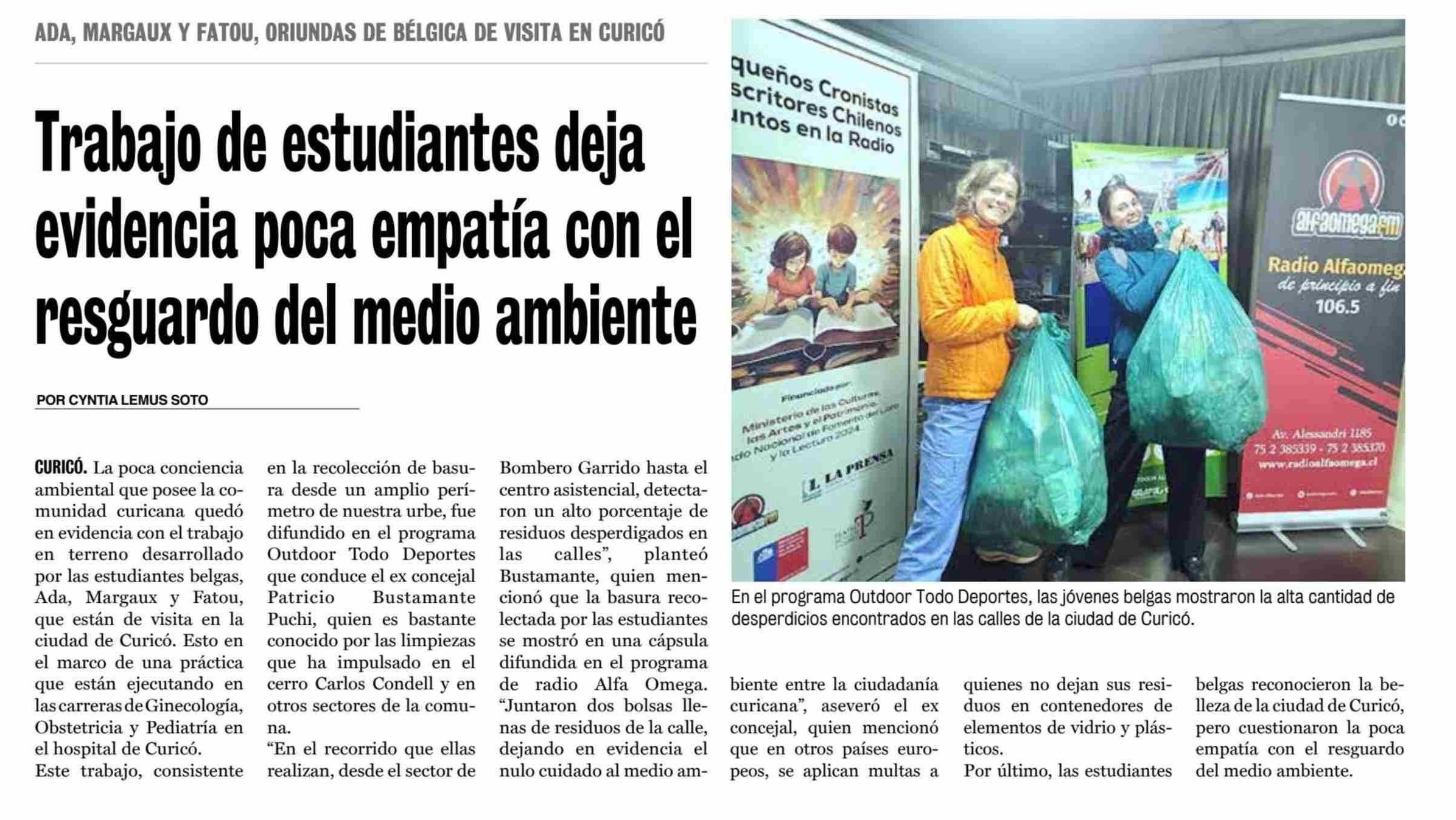 Trabajo de estudiantes deja evidencia poca empatía con el resguardo del medio ambiente 10-06-2025 La Prensa de Curicó |