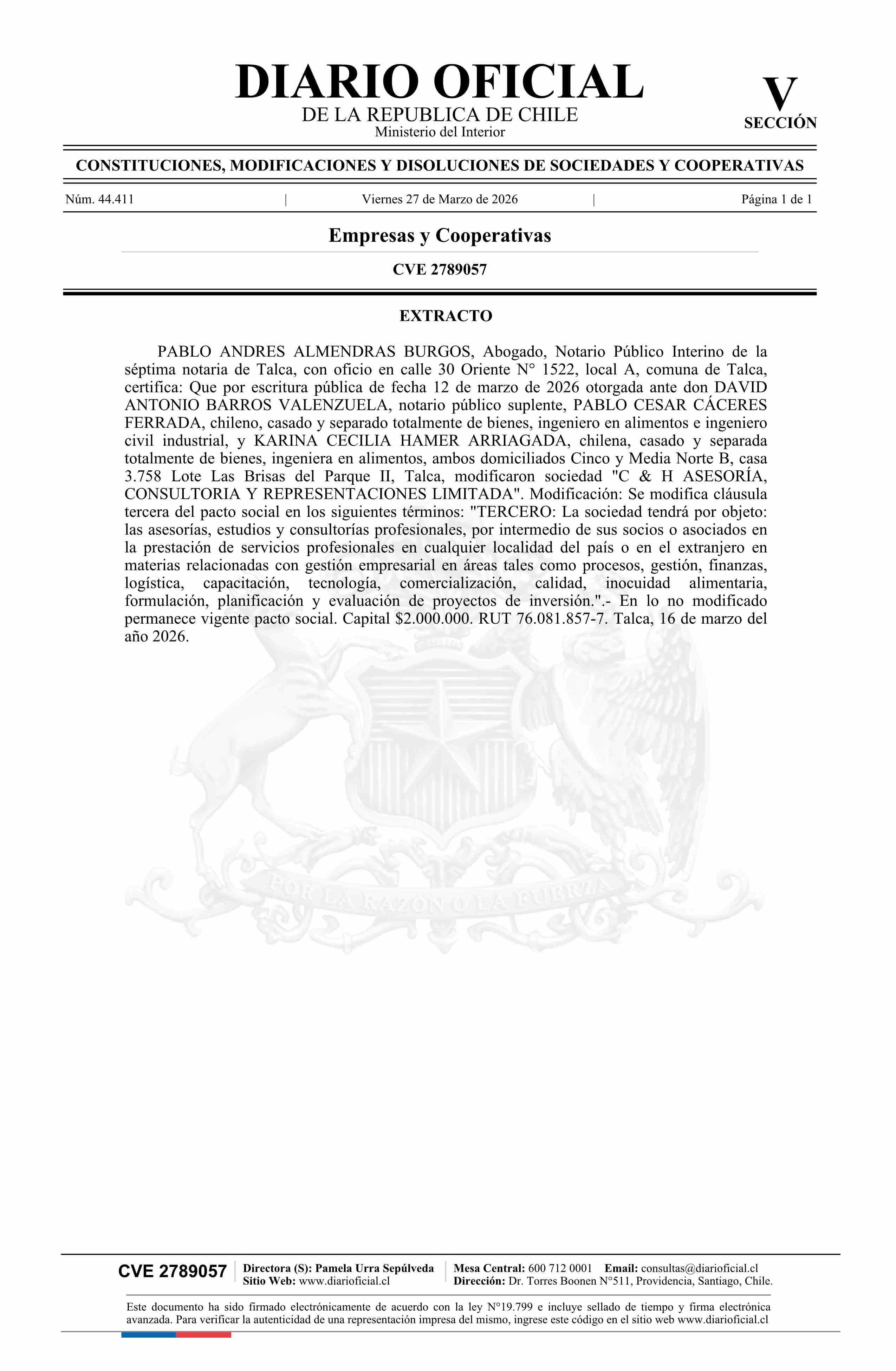 Título: C & H ASESORÍA, CONSULTORIA Y REPRESENTACIONES LIMITADA 76.081.857-7*