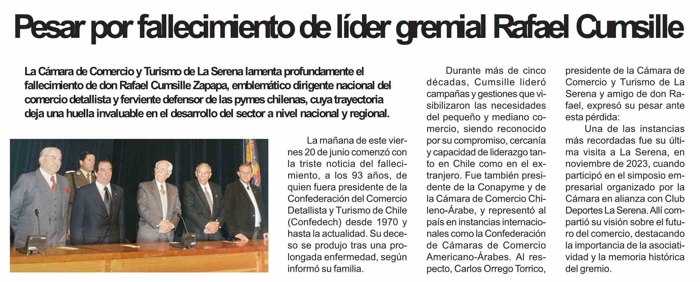 Pesar por fallecimiento de líder gremial Rafael Cumsille 21-06-2025 Diario la Región |