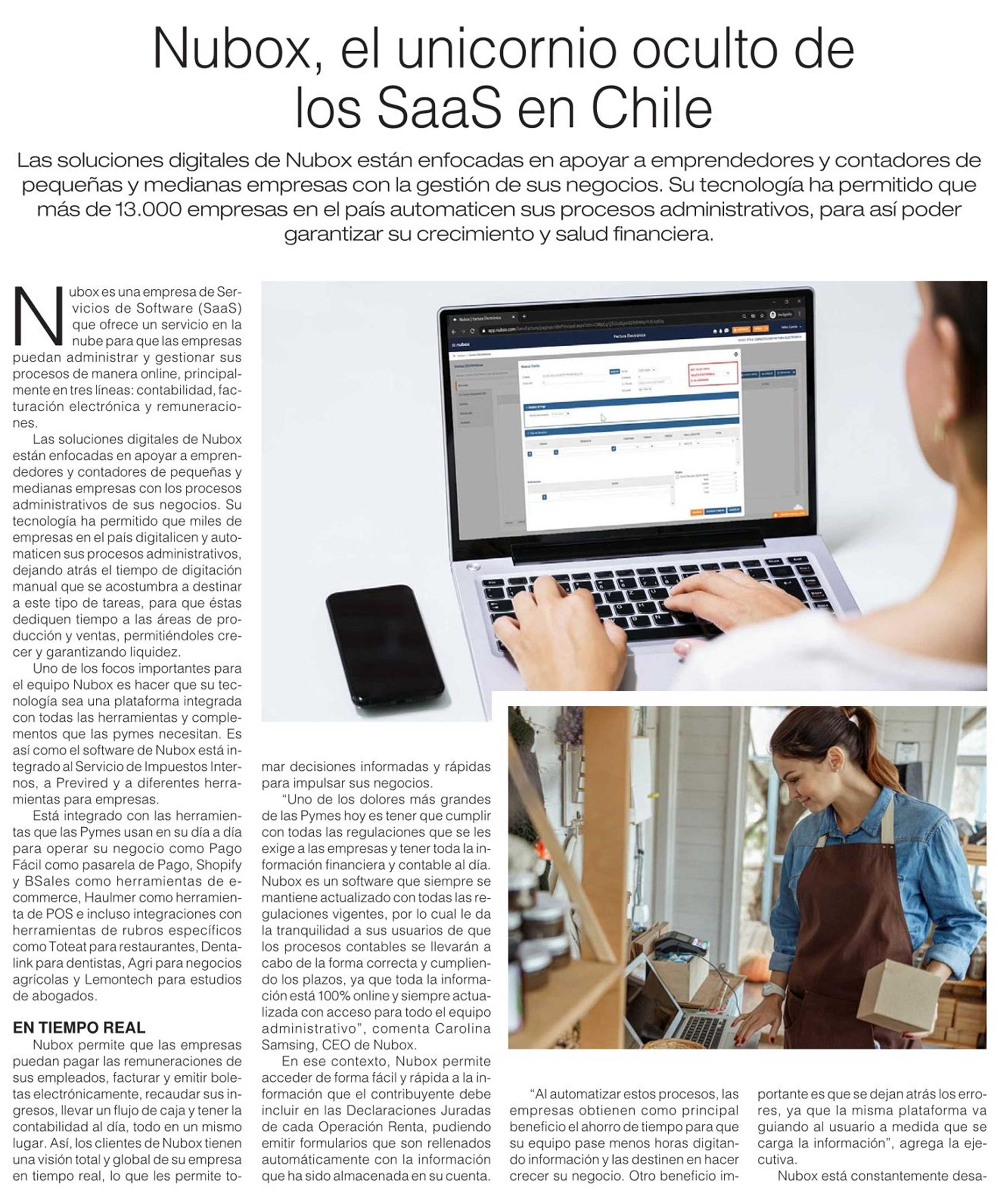 Nubox, el unicornio oculto de los SaaS en Chile 22-07-2021 La Segunda |
