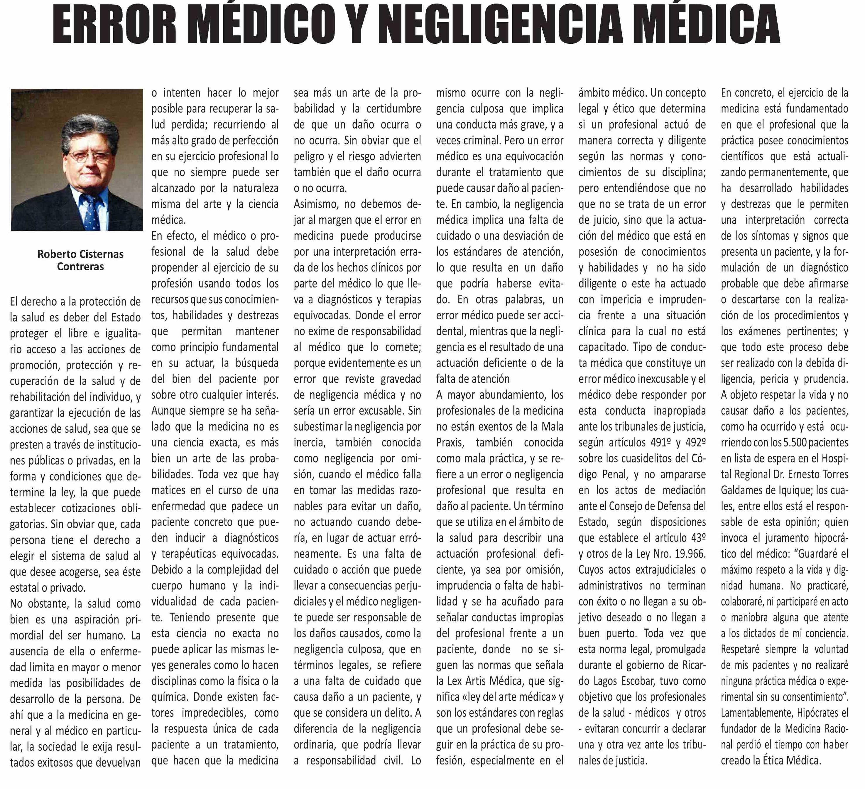 Título: ERROR MÉDICO Y NEGLIGENCIA MÉDICA