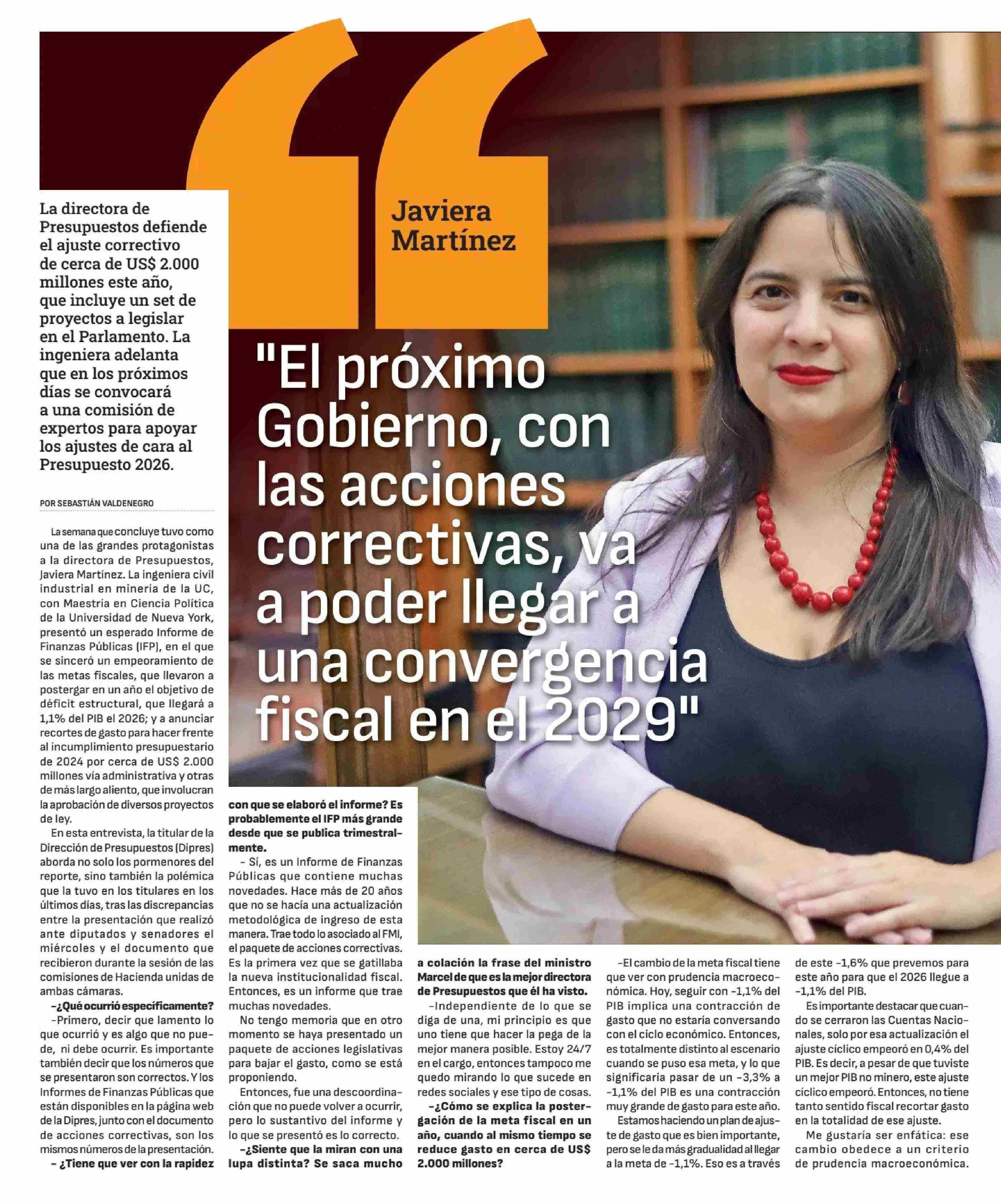 "El próximo Gobierno, con las acciones correctivas, va a poder llegar a una convergencia fiscal en el 2029" 26-04-2025 Diario Financiero |