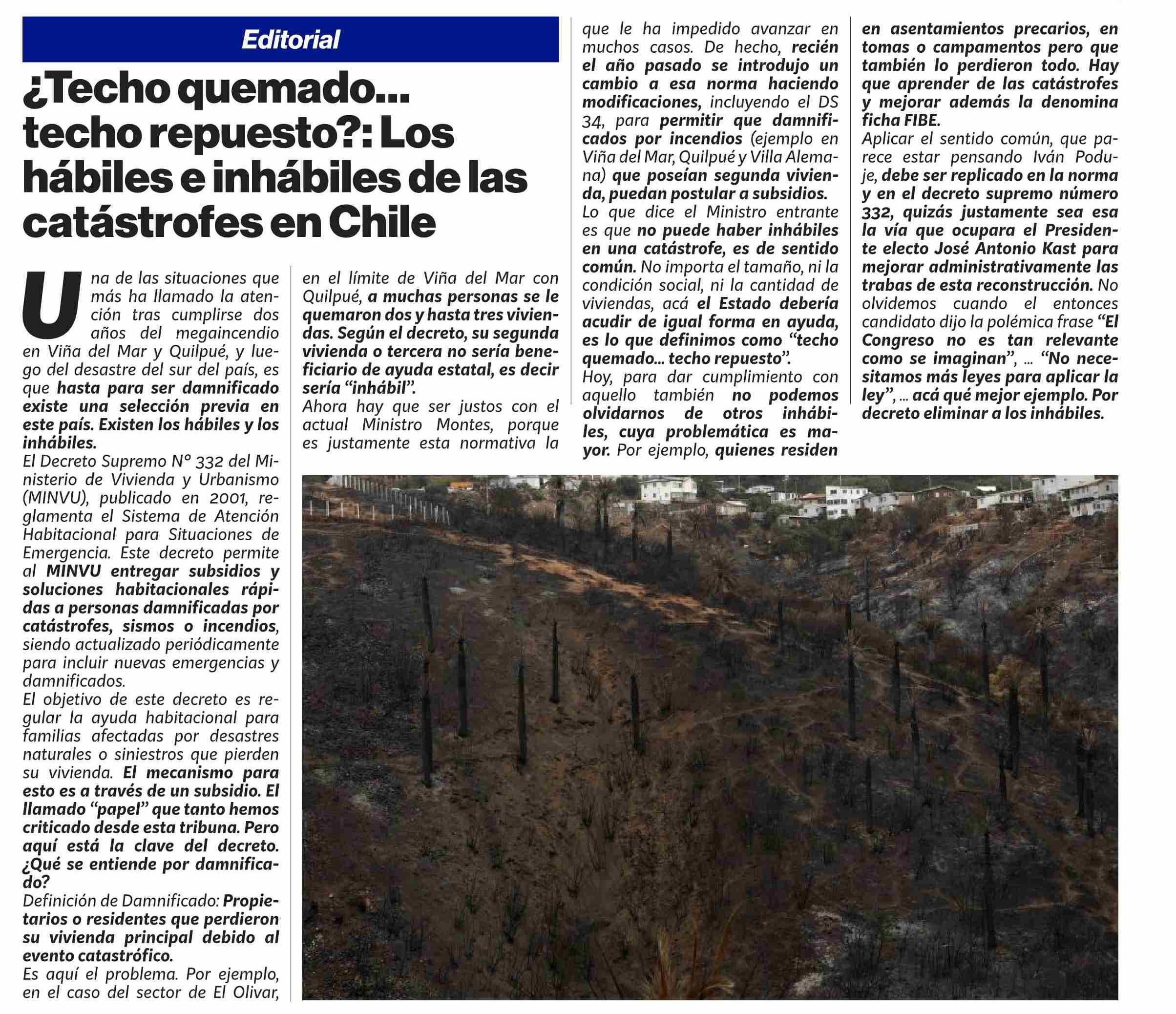 EDITORIAL: ¿Techo quemado... techo repuesto?: Los hábiles e inhábiles de las catástrofes en Chile 03-02-2026 Puranoticia.cl |