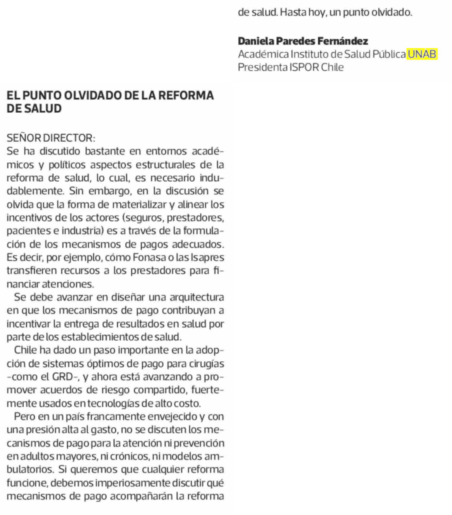 | Título: | CARTAS: EL PUNTO OLVIDADO DE LA REFORMA DE SALUD |