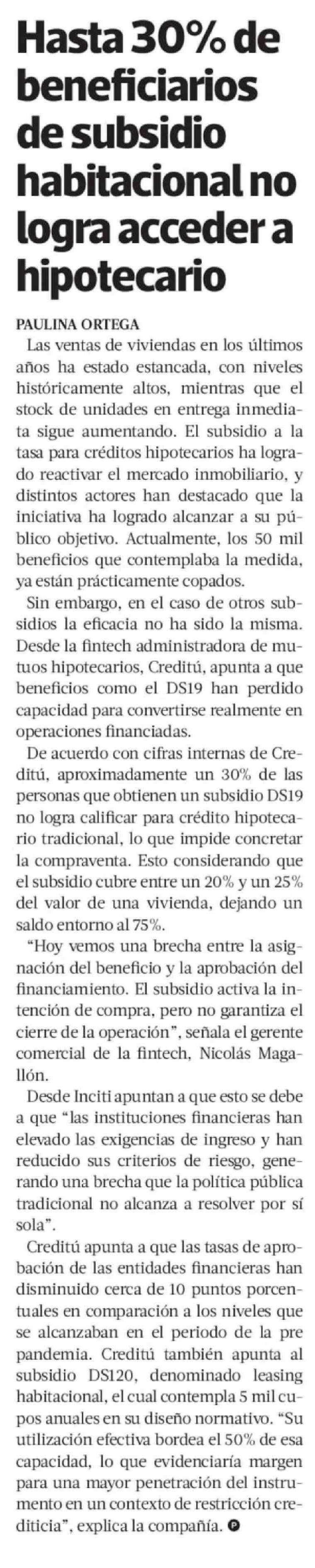 Título: Hasta 30% de beneficiarios de subsidio habitacional no logra acceder a hipotecario