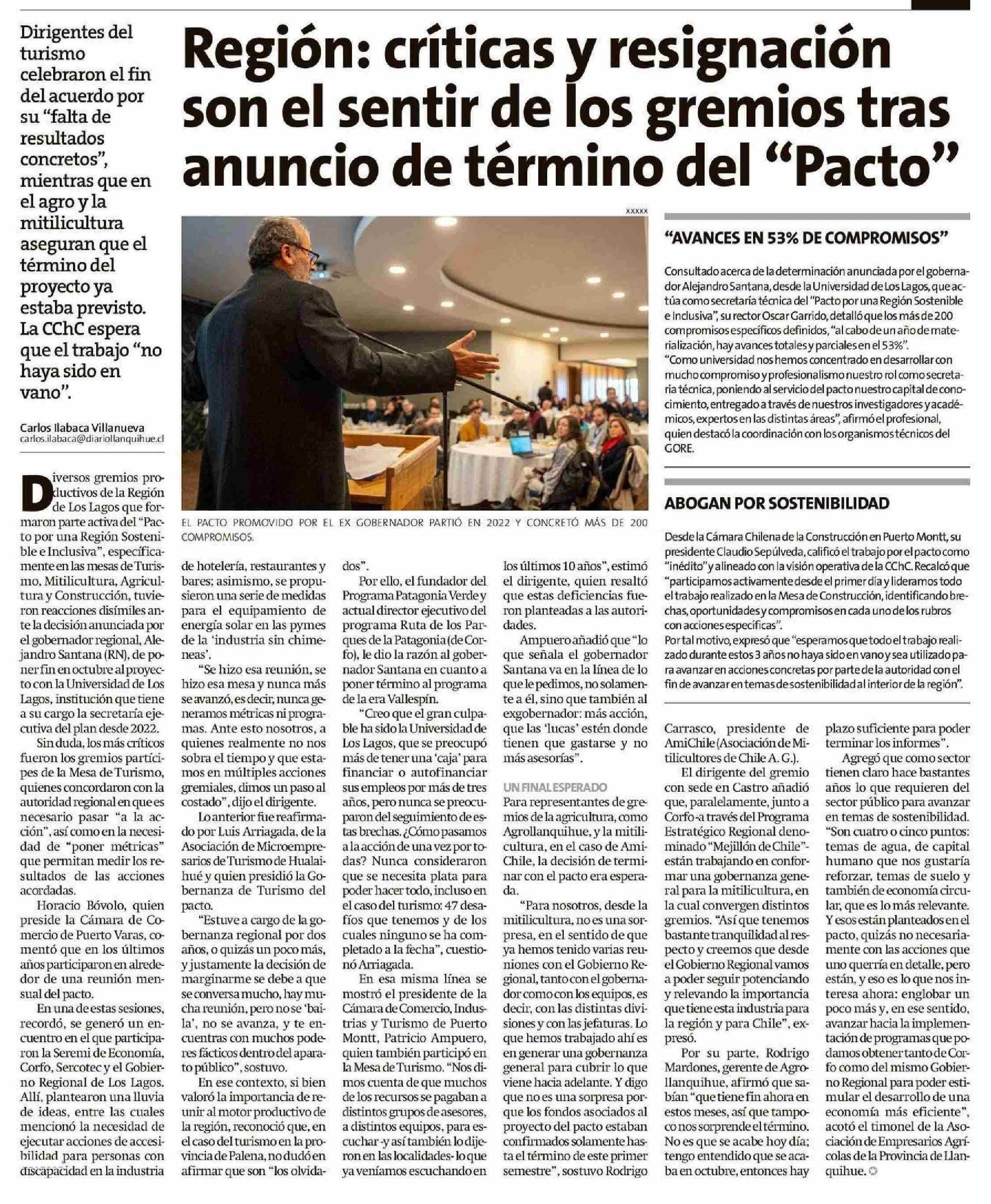Región: críticas y resignación son el sentir de los gremios tras anuncio de término del "Pacto" 17-06-2025 La Estrella de Chiloé |