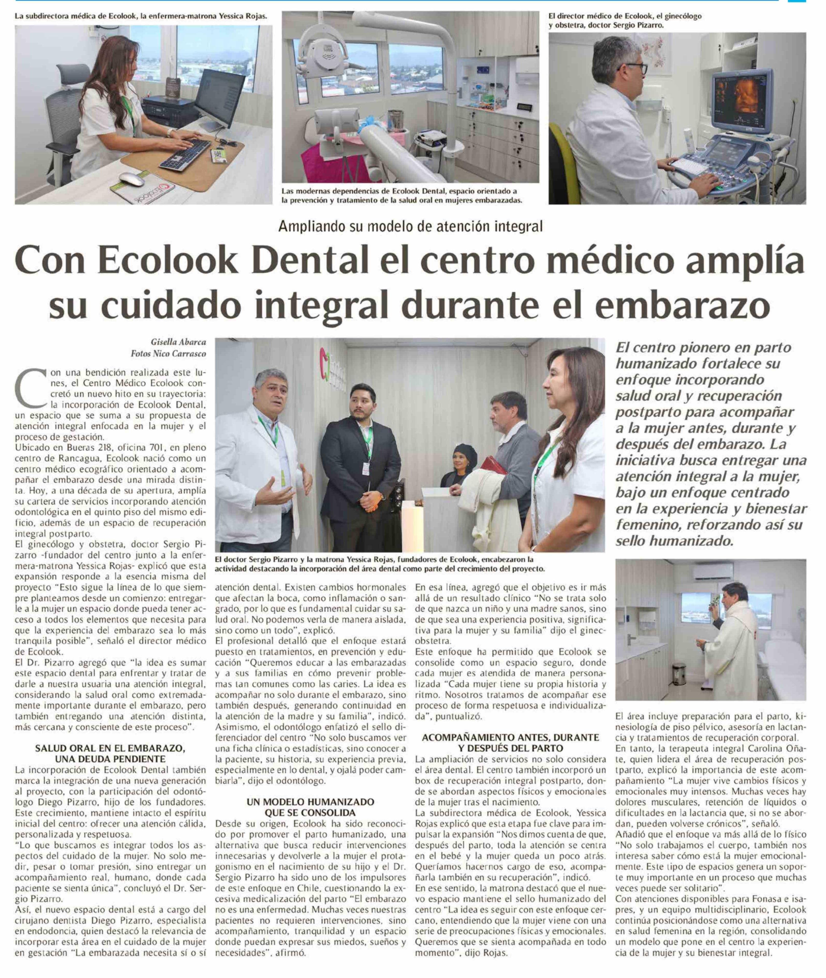 Con Ecolook Dental el centro médico amplía su cuidado integral durante el embarazo 01-04-2026 El Rancagüino |