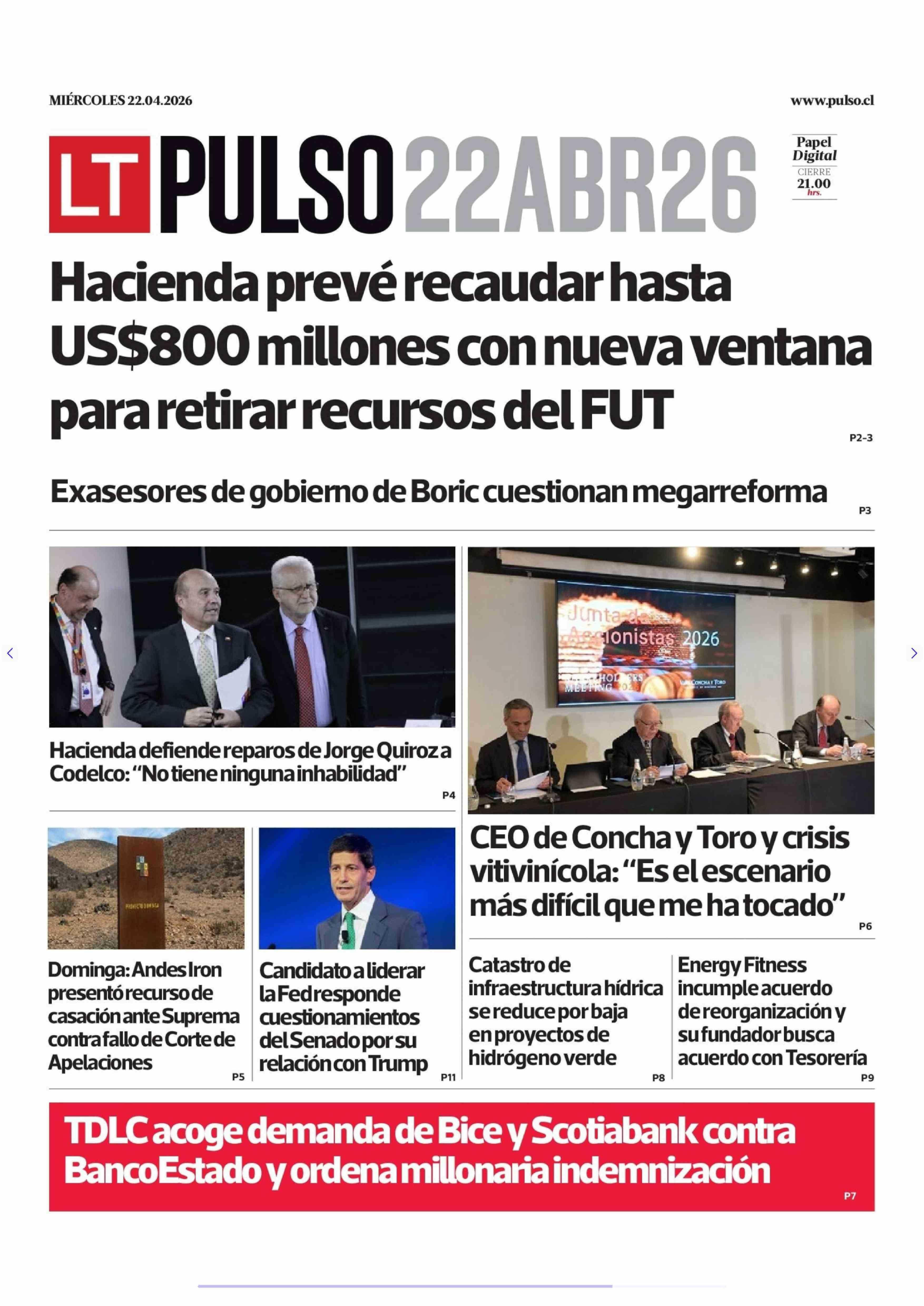Fecha: 22-04-2026 Sector: Portada Región: Región Metropolitana de Santiago