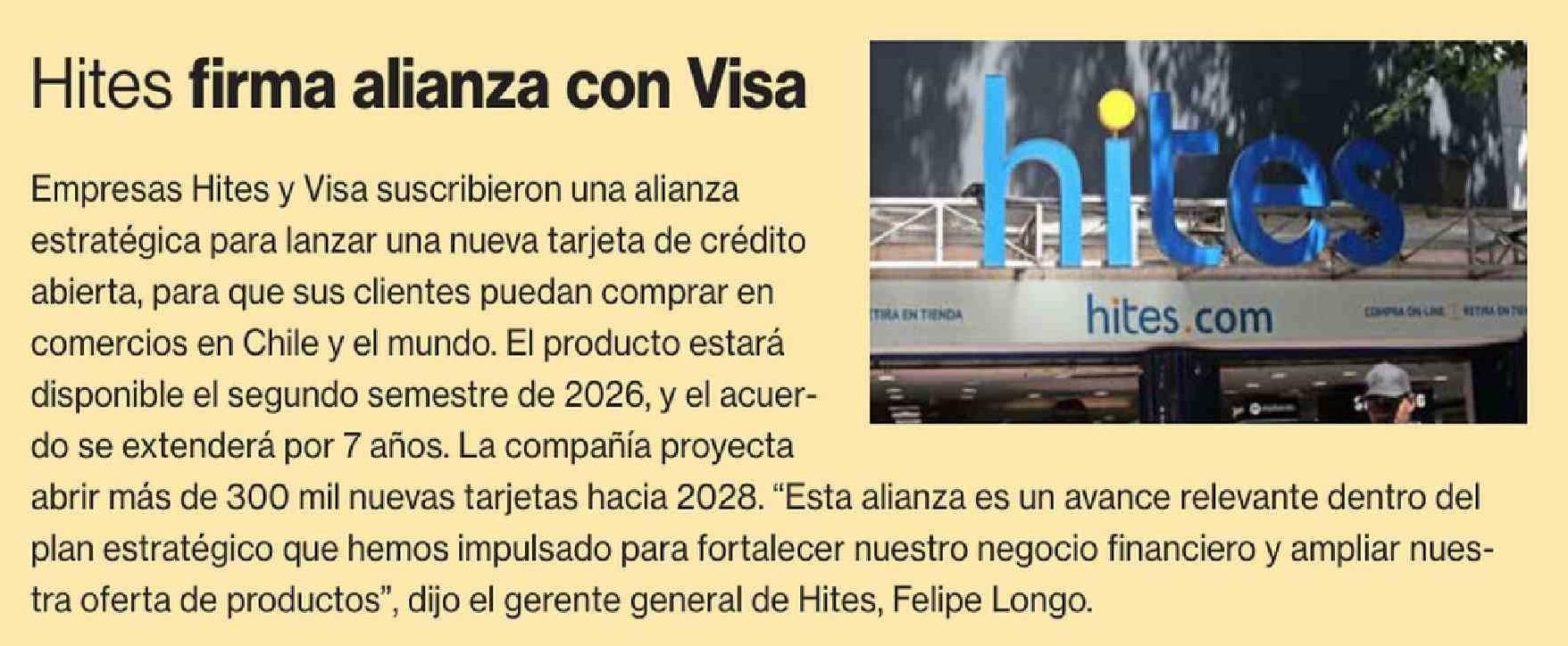 | Título: | Hites firma alianza con Visa |
