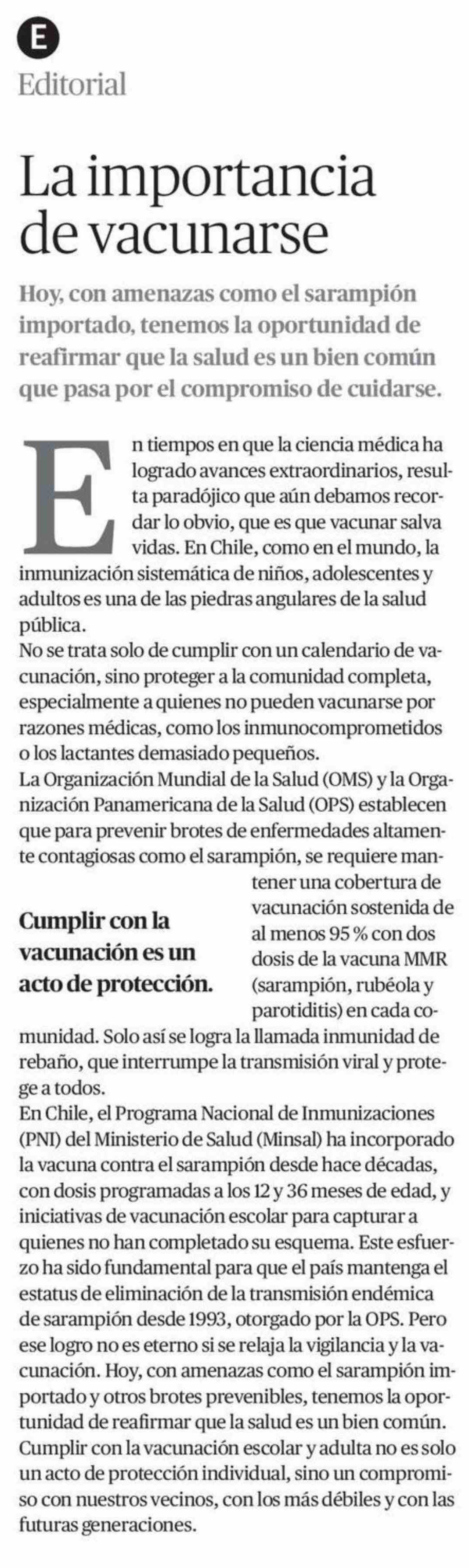 Título: Editorial: La importancia de vacunarse