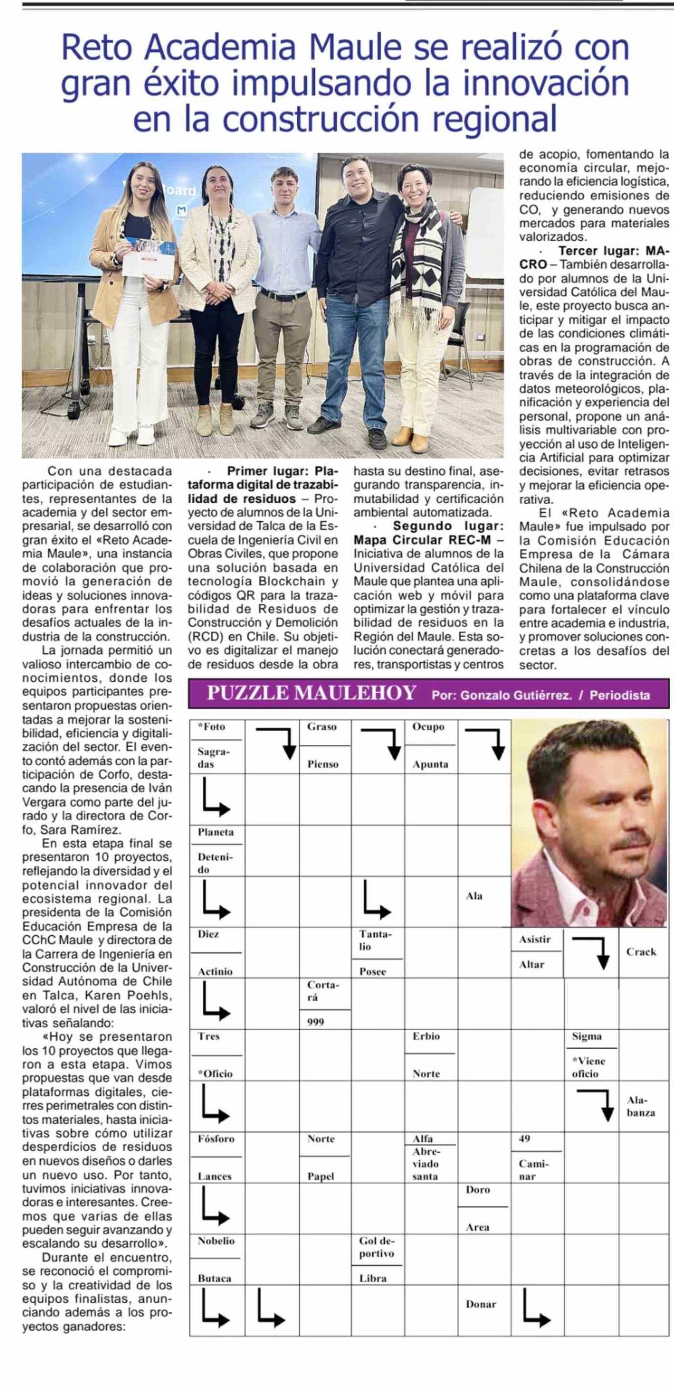 Reto Academia Maule se realizó con gran éxito impulsando la innovación en la construcción regional 08-04-2026 Maule Hoy |