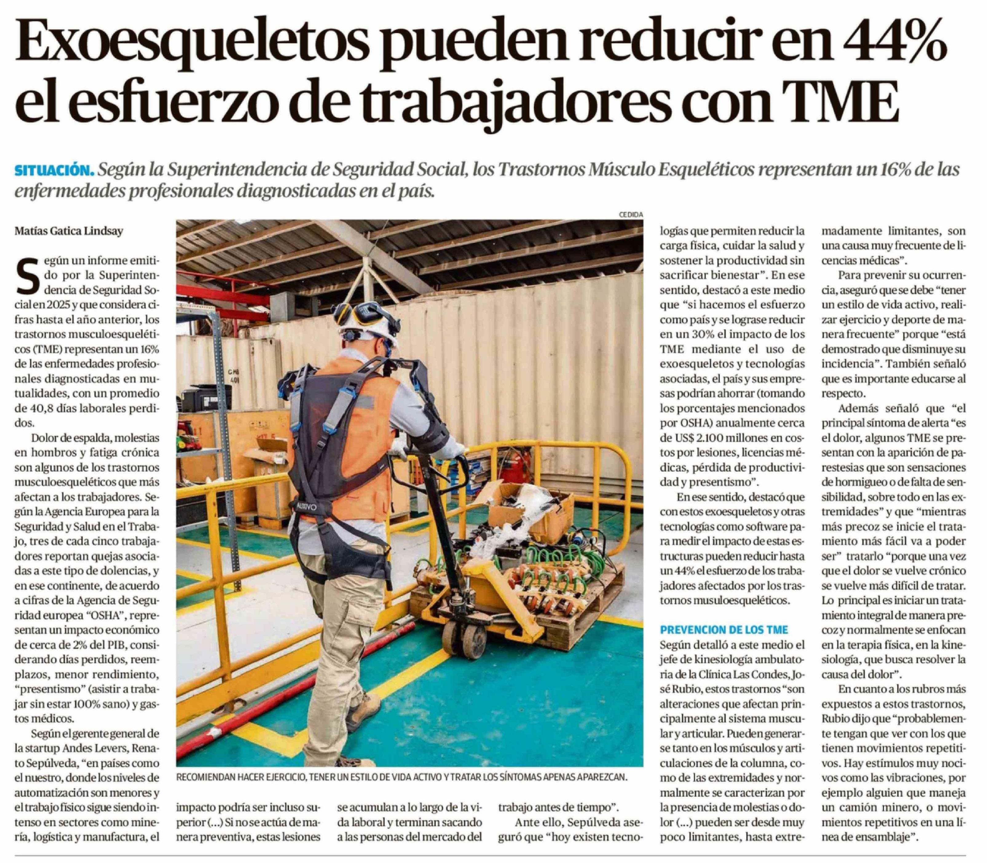 Exoesqueletos pueden reducir en 44% el esfuerzo de trabajadores con TME 09-02-2026 Crónica de Chillán |