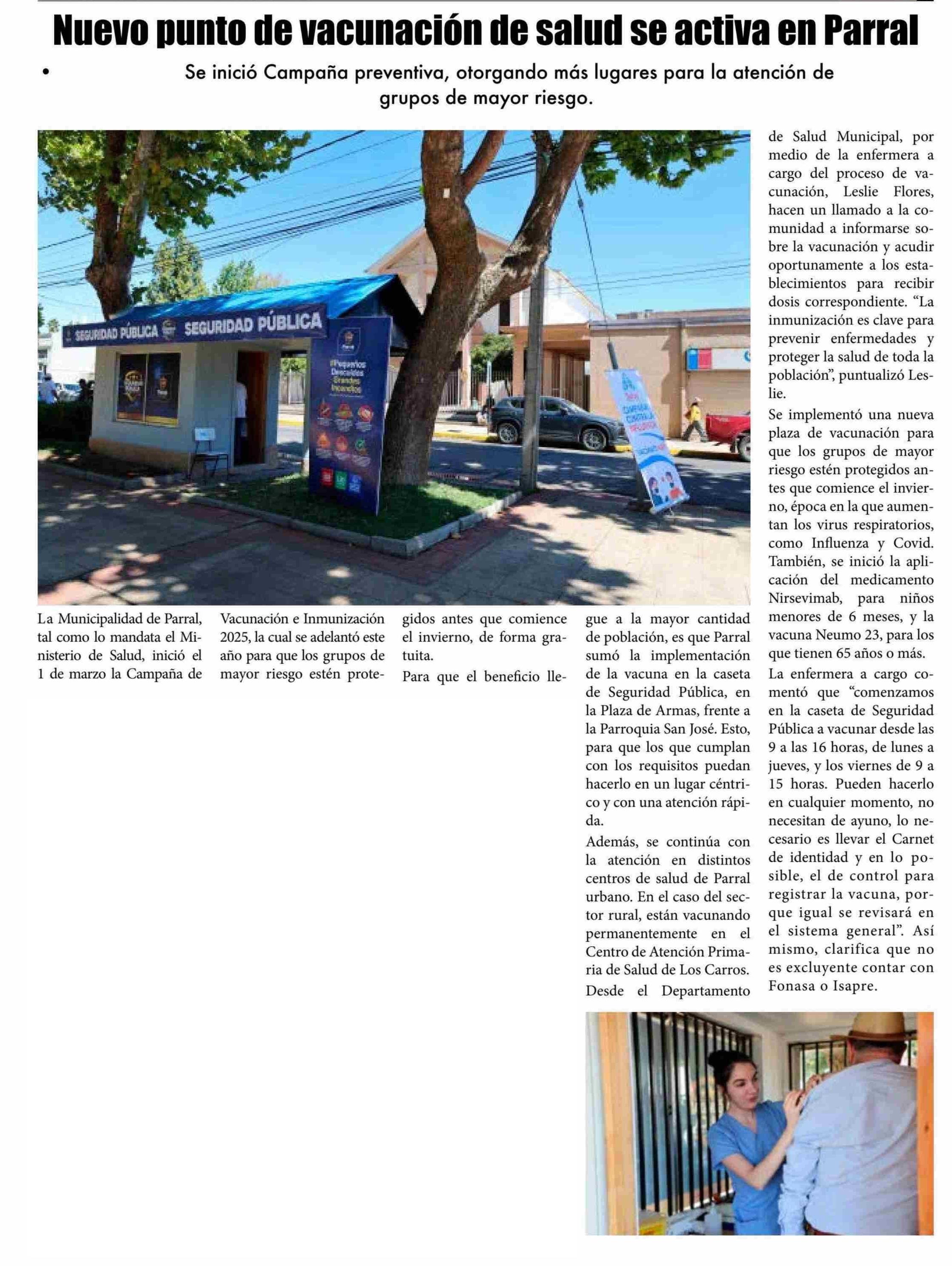 Nuevo punto de vacunación de salud se activa en Parral 11-03-2025 El Lector |