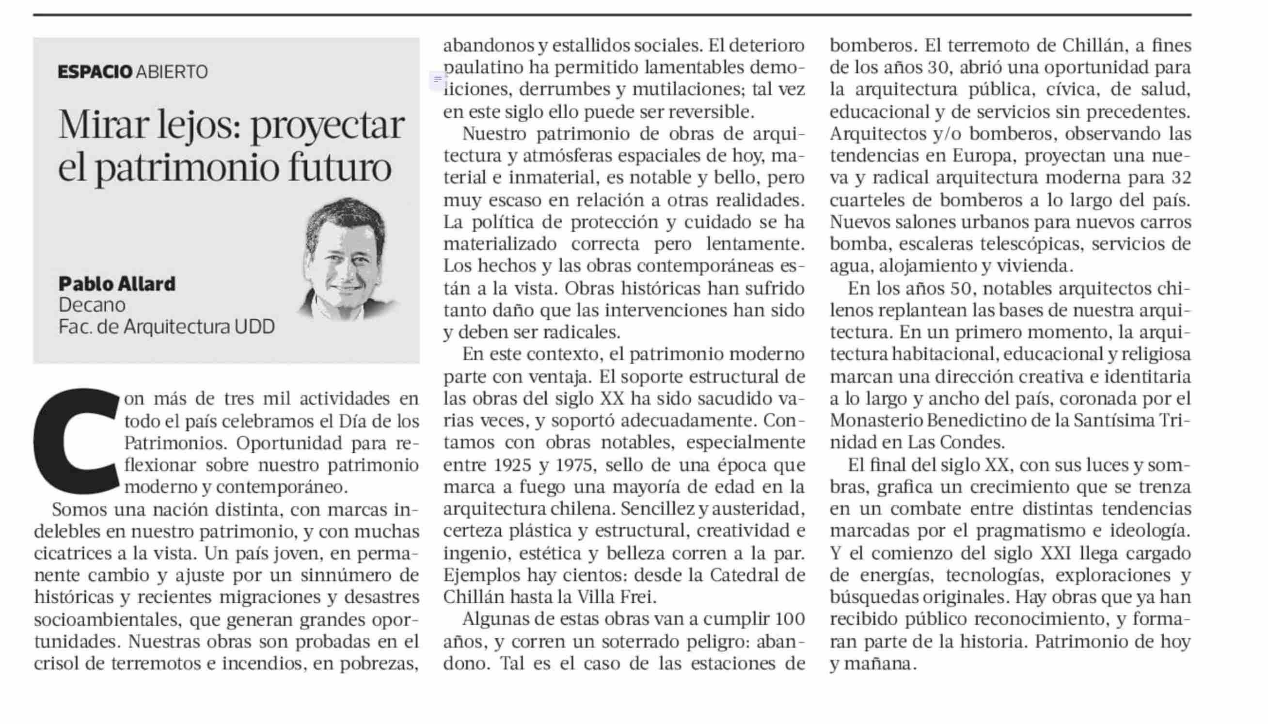 COLUMNAS DE OPINIÓN: proyectar el patrimonio futuro 26-05-2025 La Tercera |