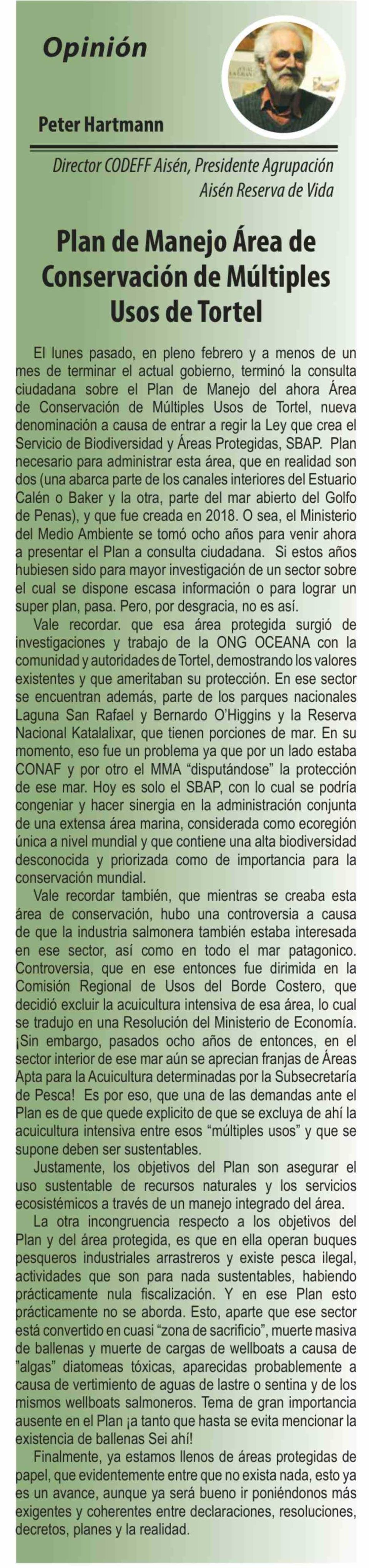 Título: Columnas de Opinión: Plan de Manejo Área de Conservación de Múltiples Usos de Tortel