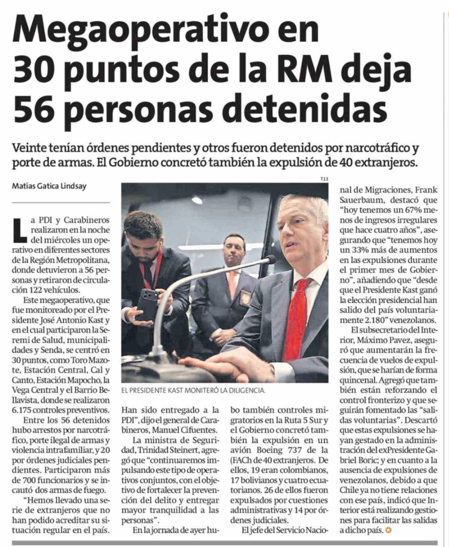 Megaoperativo en 30 puntos de la RM deja 56 personas detenidas 17-04-2026 La Estrella de Quillota |