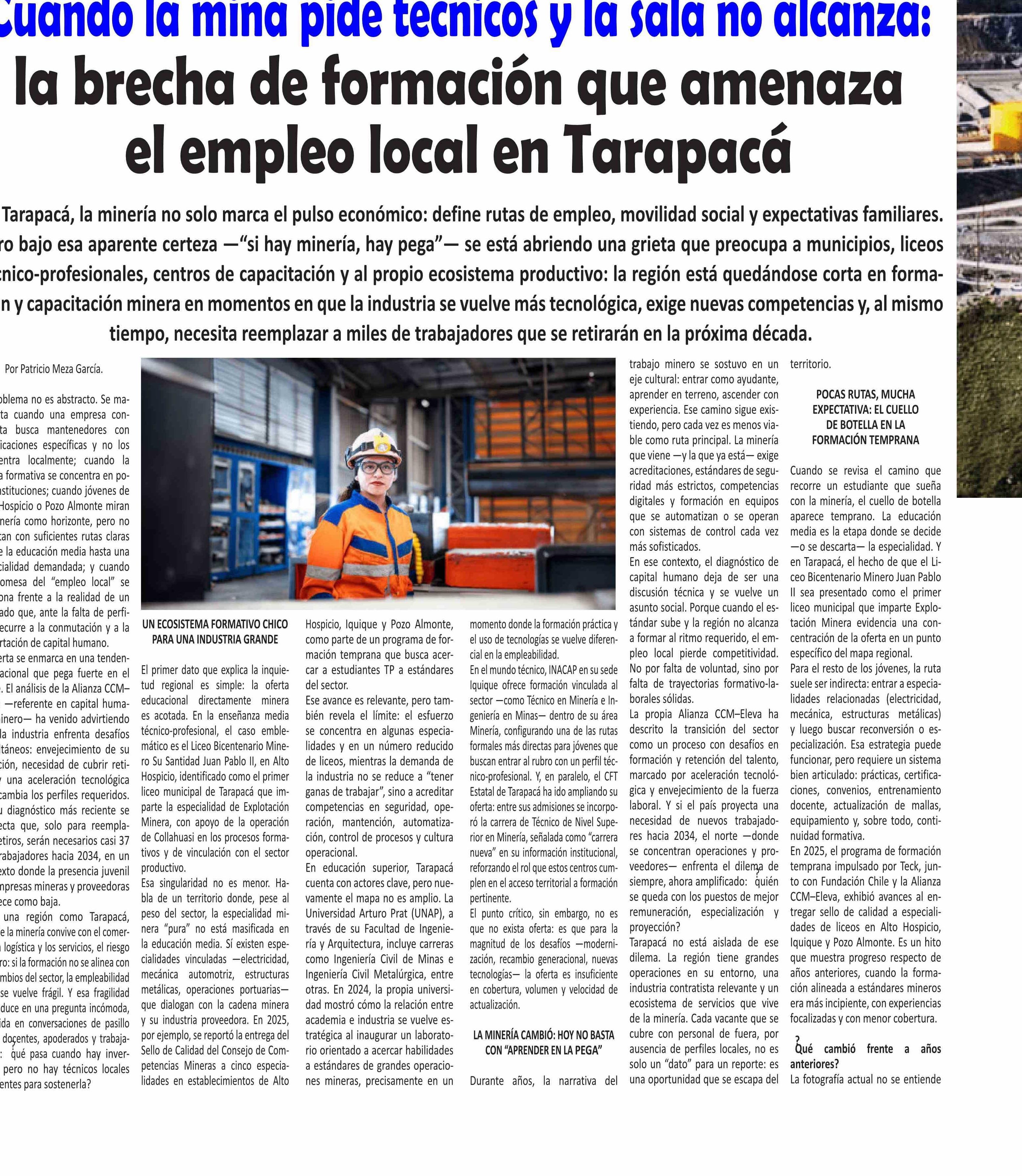 Título: Cuando la mina pide técnicos y la sala no alcanza; la brecha de formación que amenaza el empleo local en Tarapacá