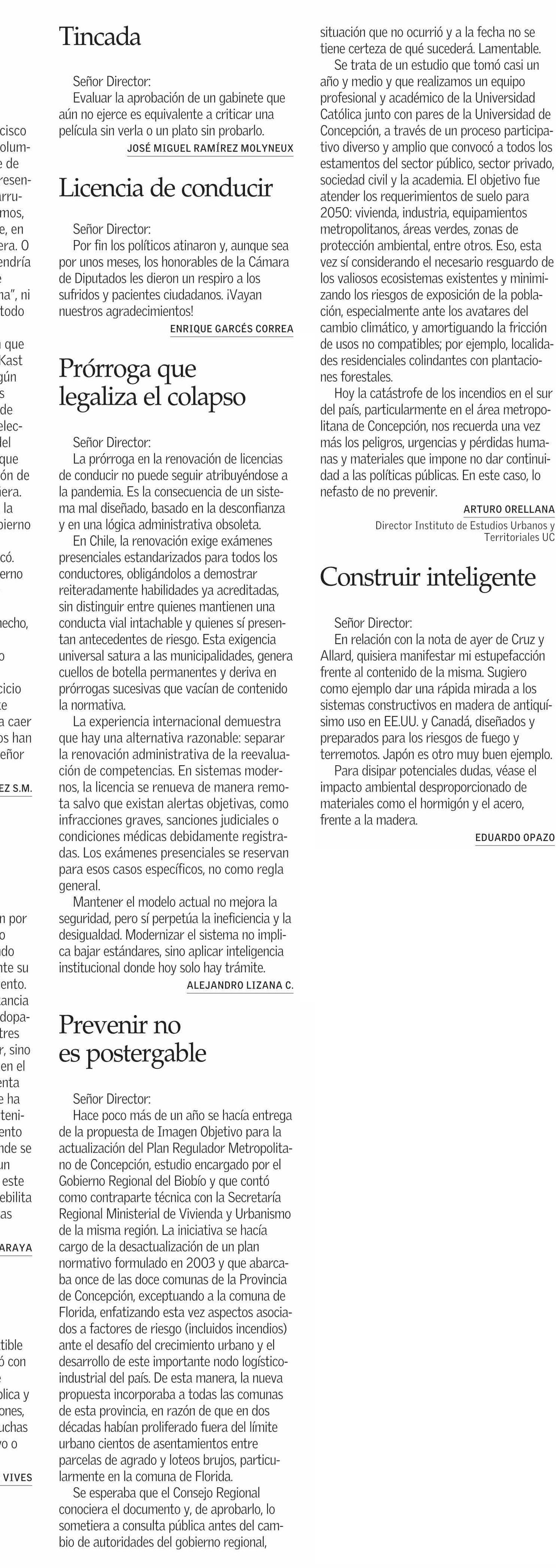 CARTAS: Prevenir no es postergable 25-01-2026 El Mercurio |