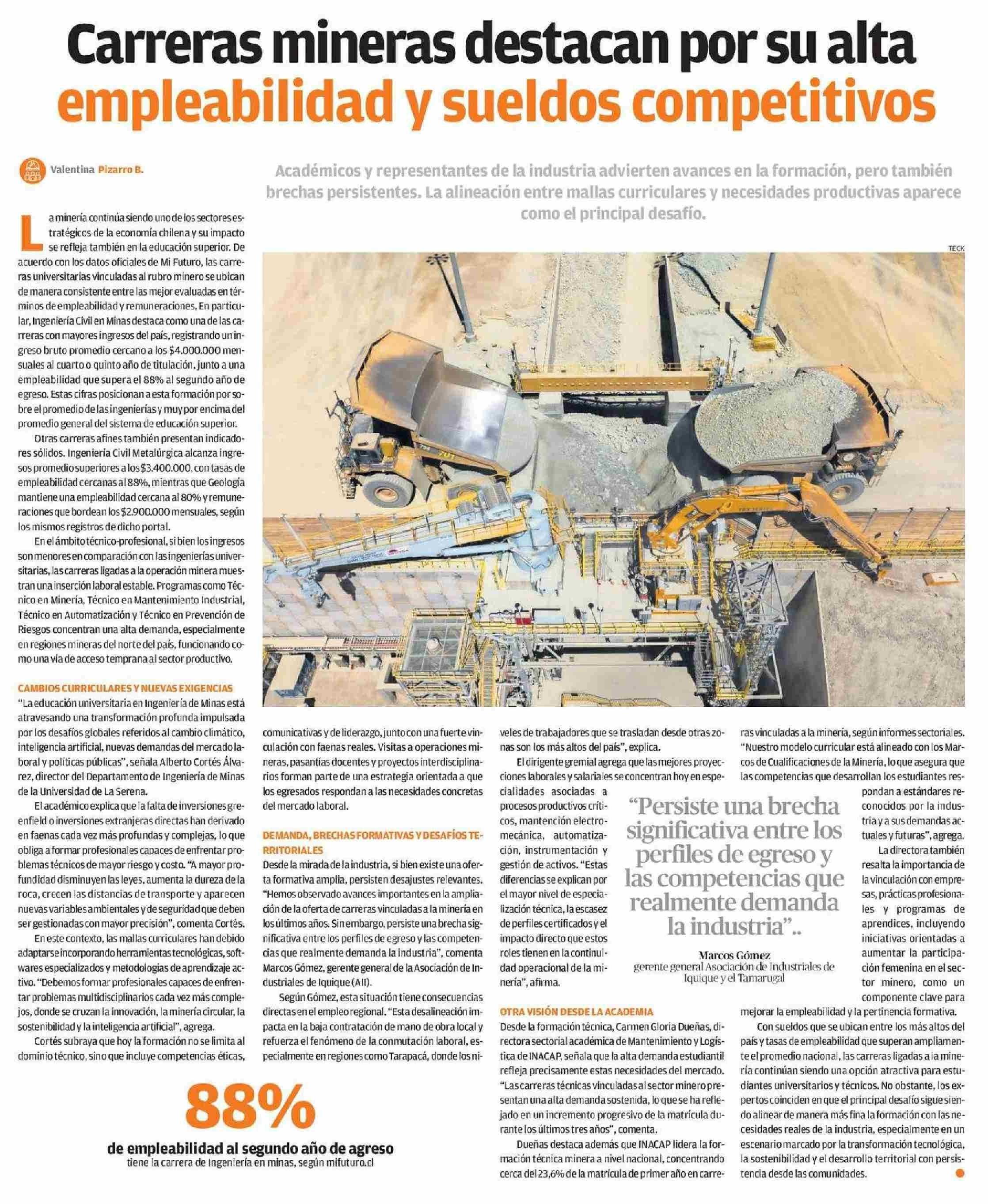 Carreras mineras destacan por su alta empleabilidad y sueldos competitivos 11-01-2026 La Estrella de Iquique |
