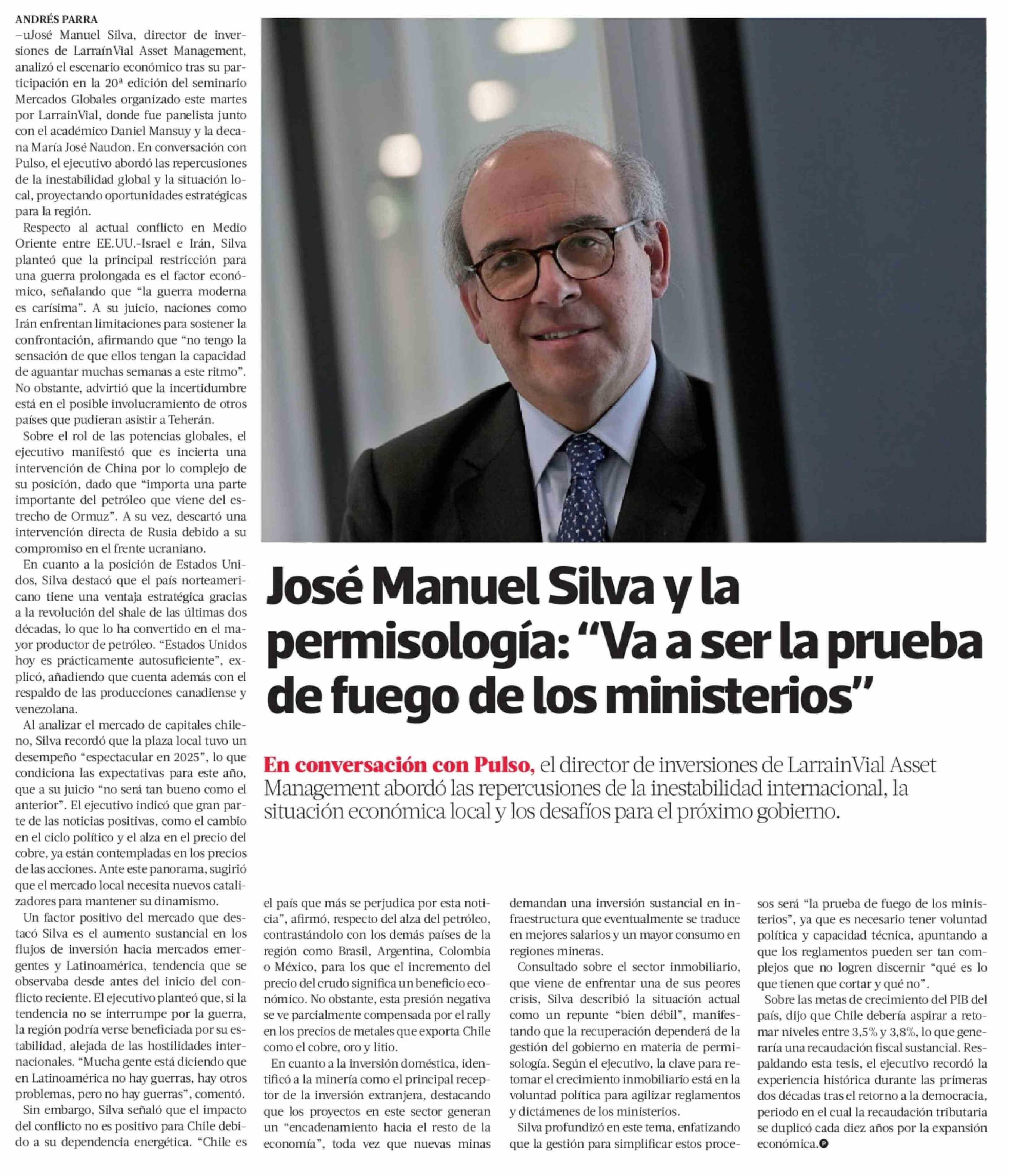 José Manuel Silva y la permisología: "Va a ser la prueba de fuego de los ministerios" 05-03-2026 La Tercera |