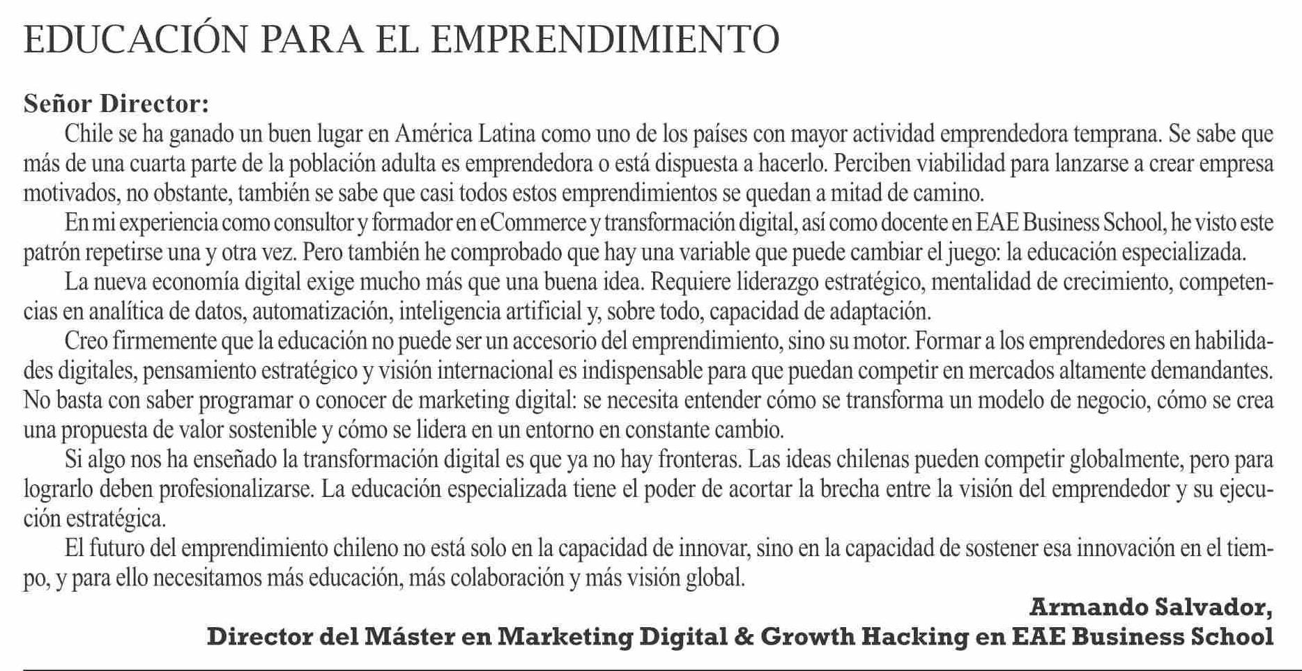 Columnas de Opinión: EduCaCión para el eMprendiMiento 21-06-2025 El Pingüino |
