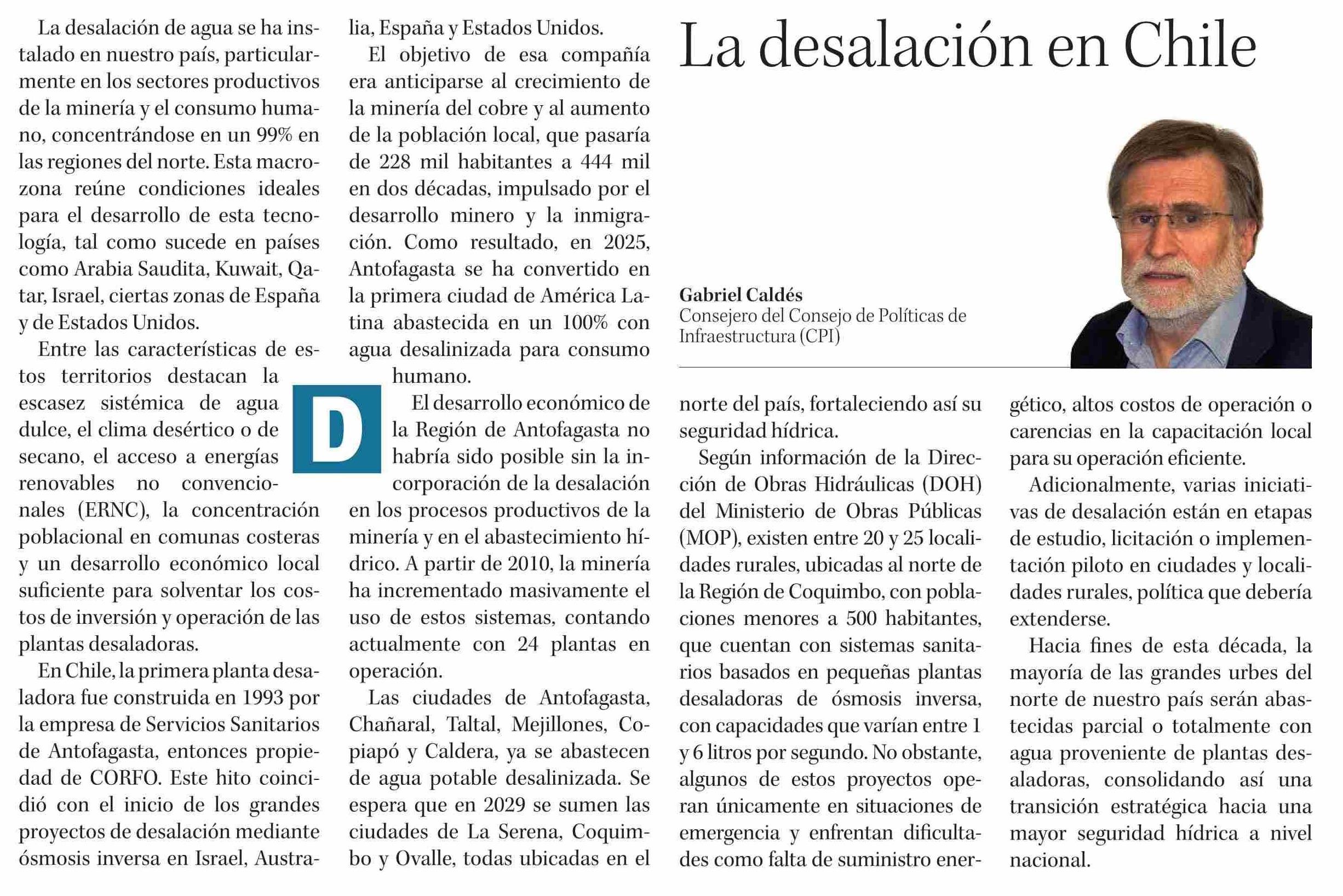 Columnas de Opinión: La desalación en Chile 06-05-2025 Diario Concepción |