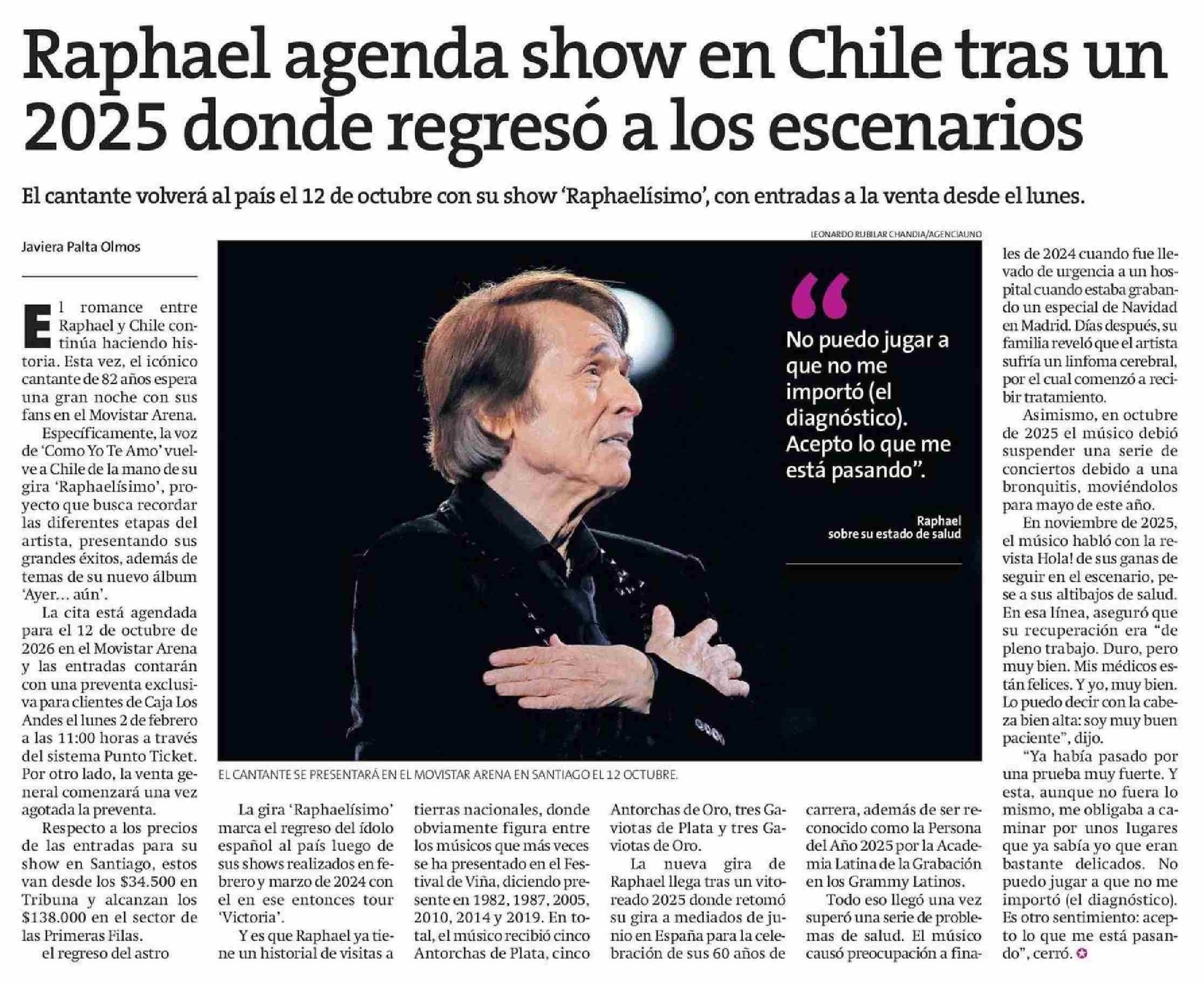 | Título: | Raphael agenda show en Chile tras un 2025 donde regresó a los escenarios |