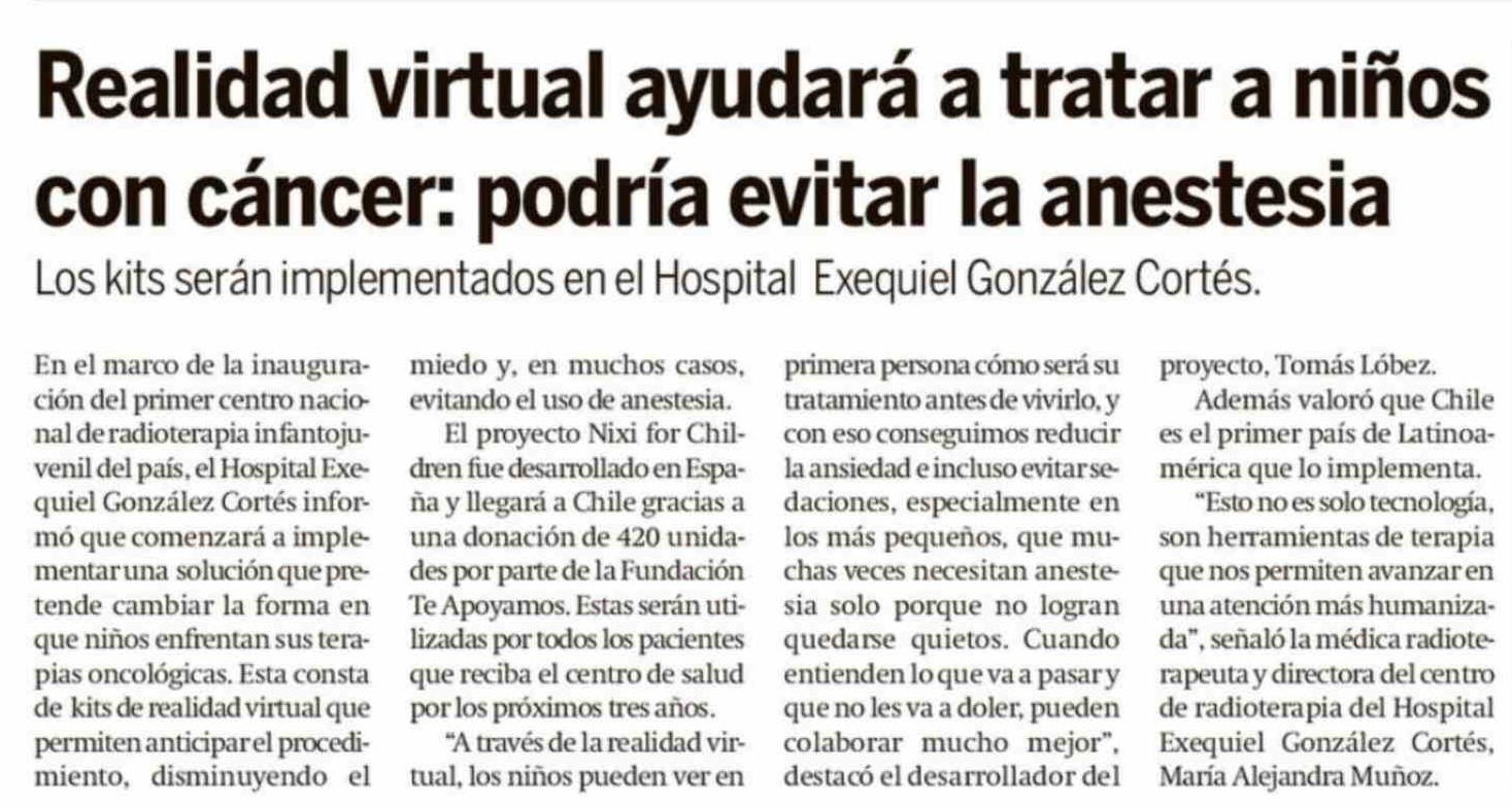 Título: Realidad virtual ayudará a tratar a niños con cáncer: podría evitar la anestesia