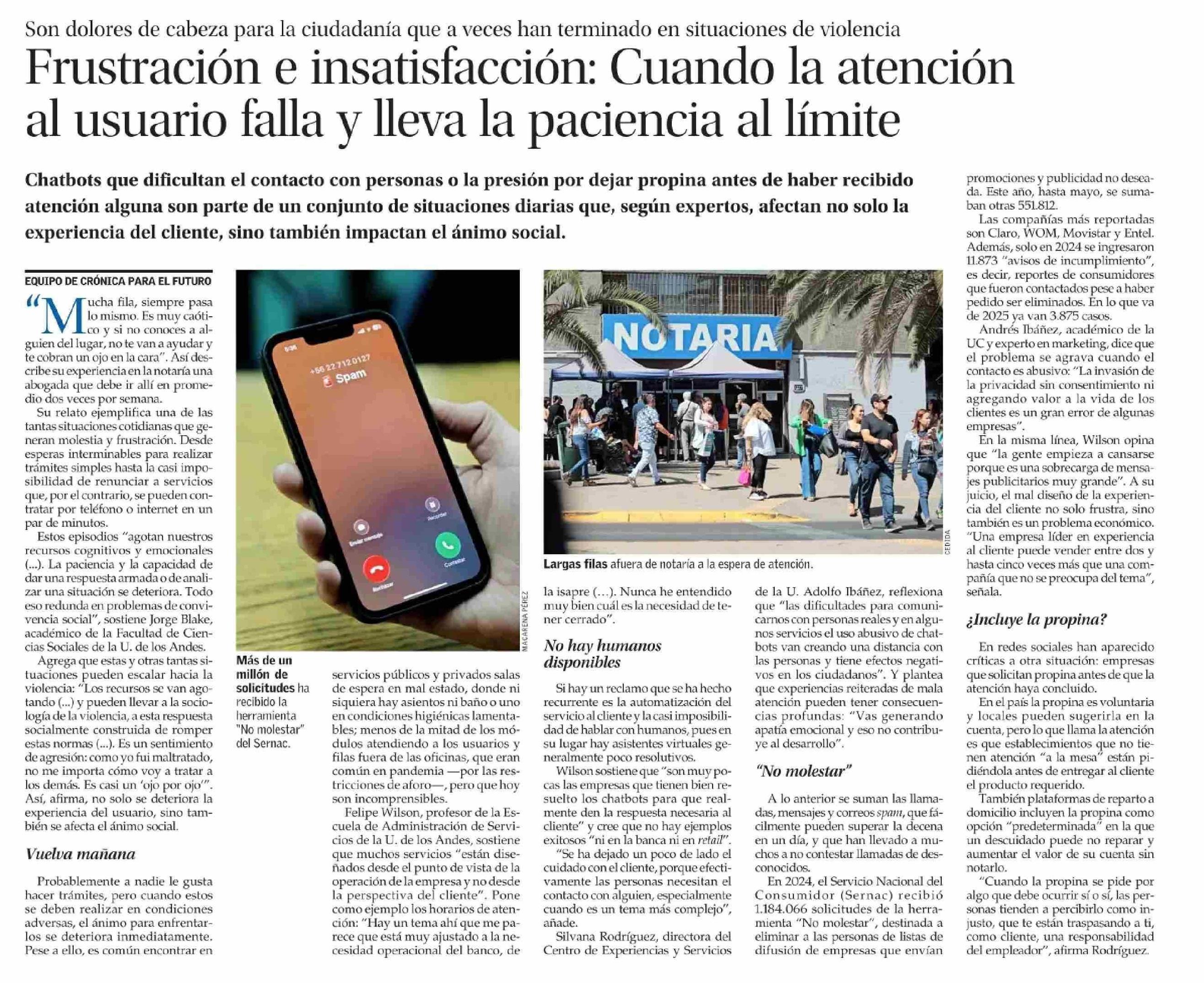 Frustración e insatisfacción: Cuando la atención al usuario falla y lleva la paciencia al límite 18-06-2025 El Mercurio |