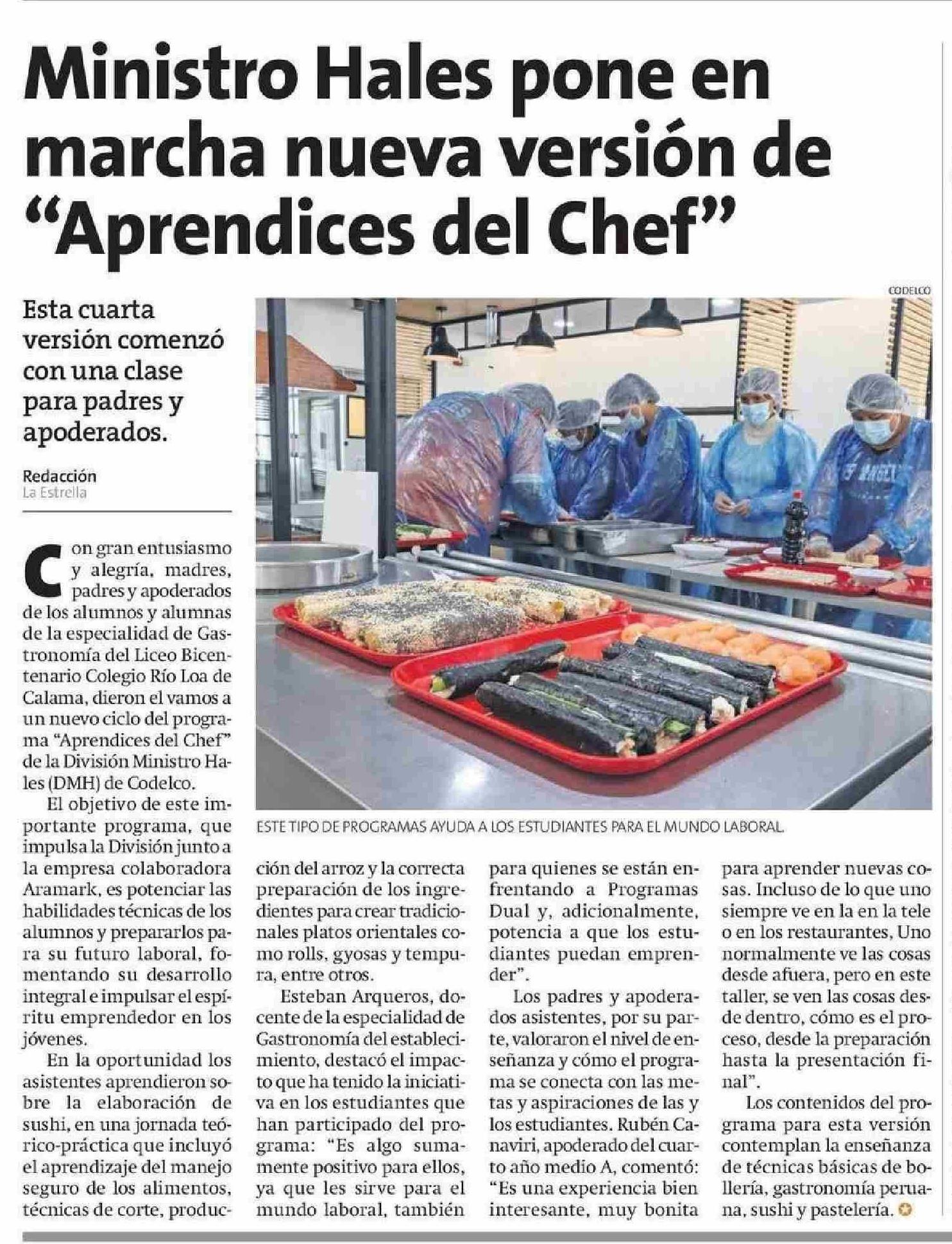 Ministro Hales pone en marcha nueva versión de “Aprendices del Chef” 22-05-2025 La Estrella de Antofagasta |