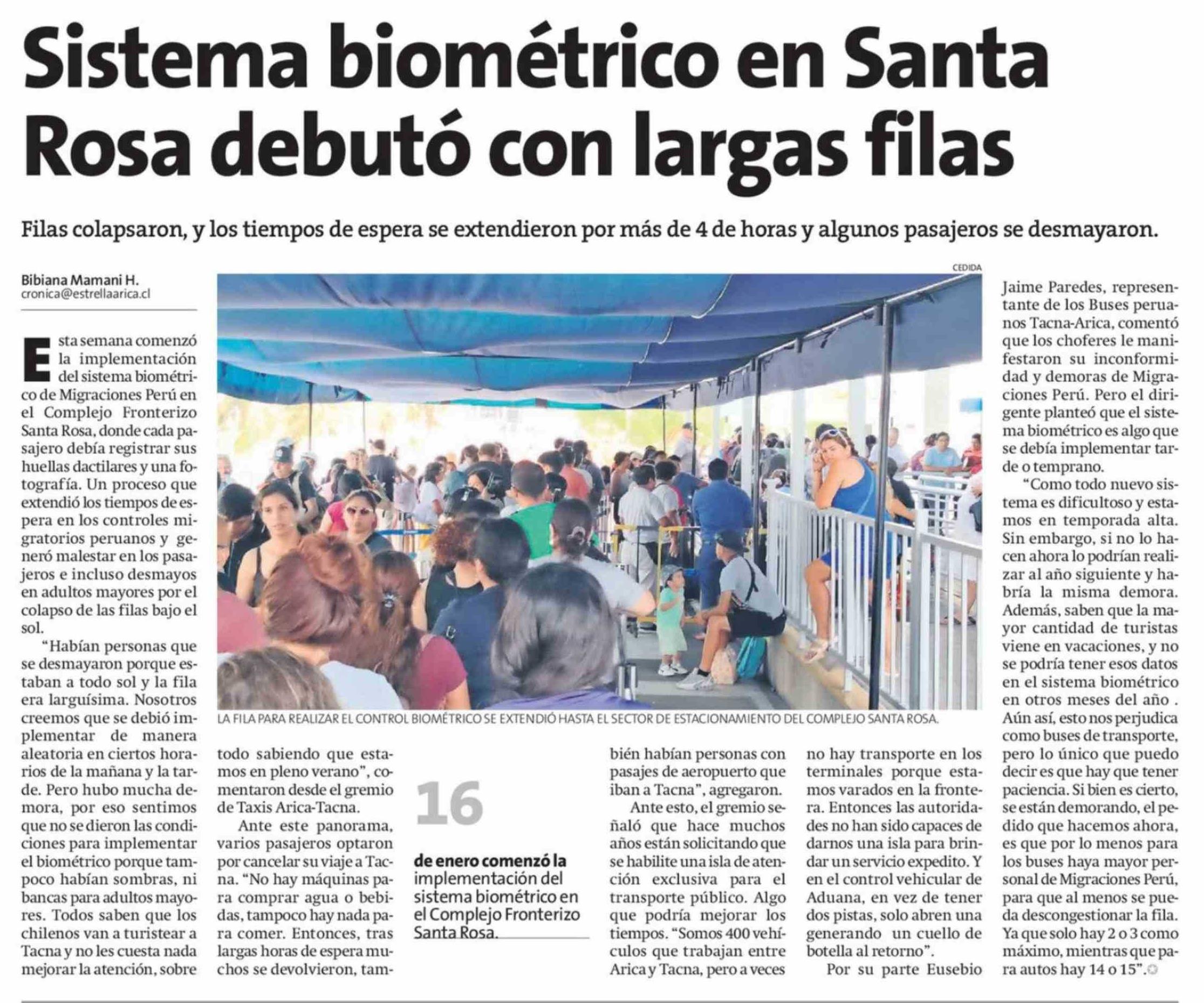 Sistema biométrico en Santa Rosa debutó con largas filas 18-02-2026 La Estrella de Arica |
